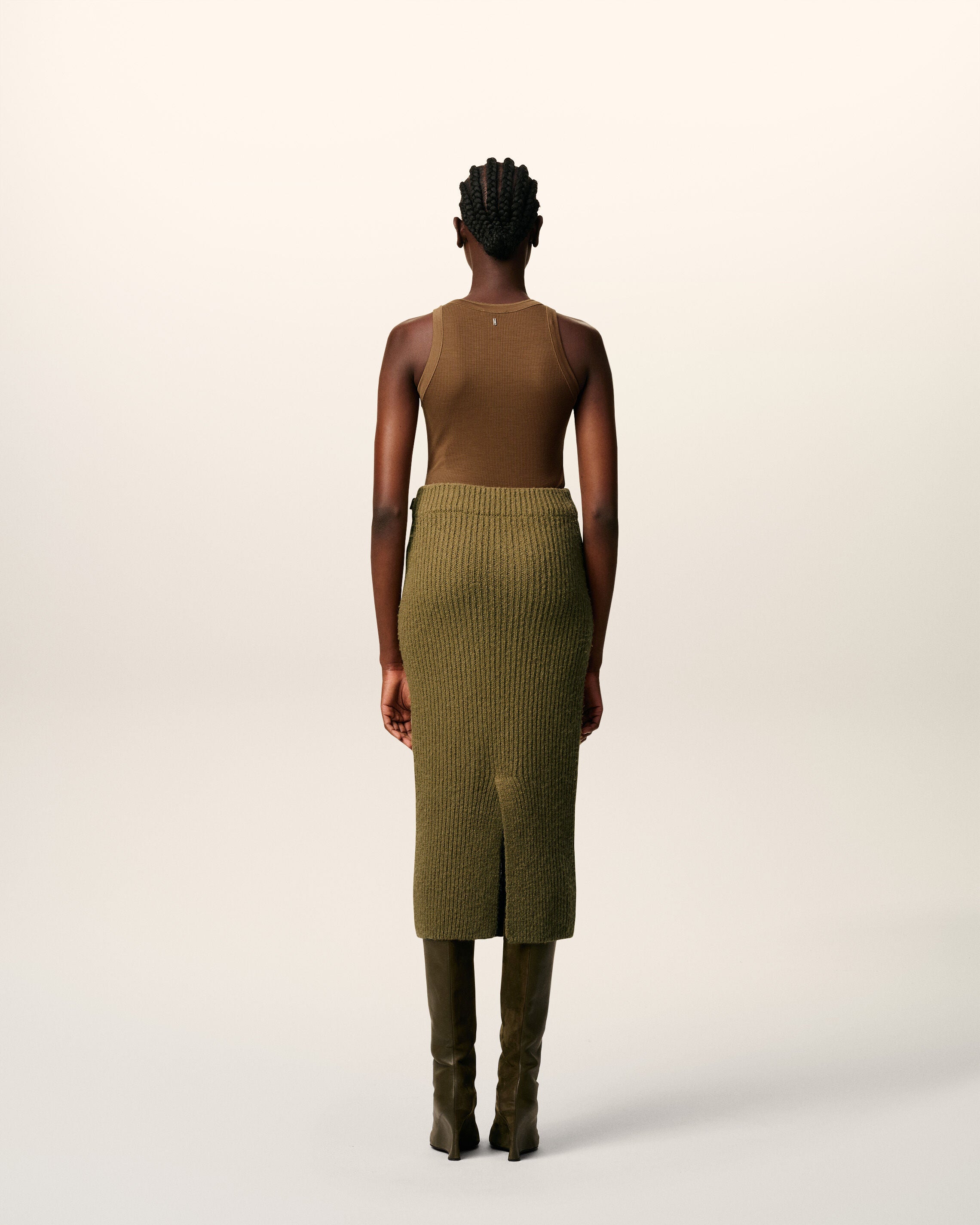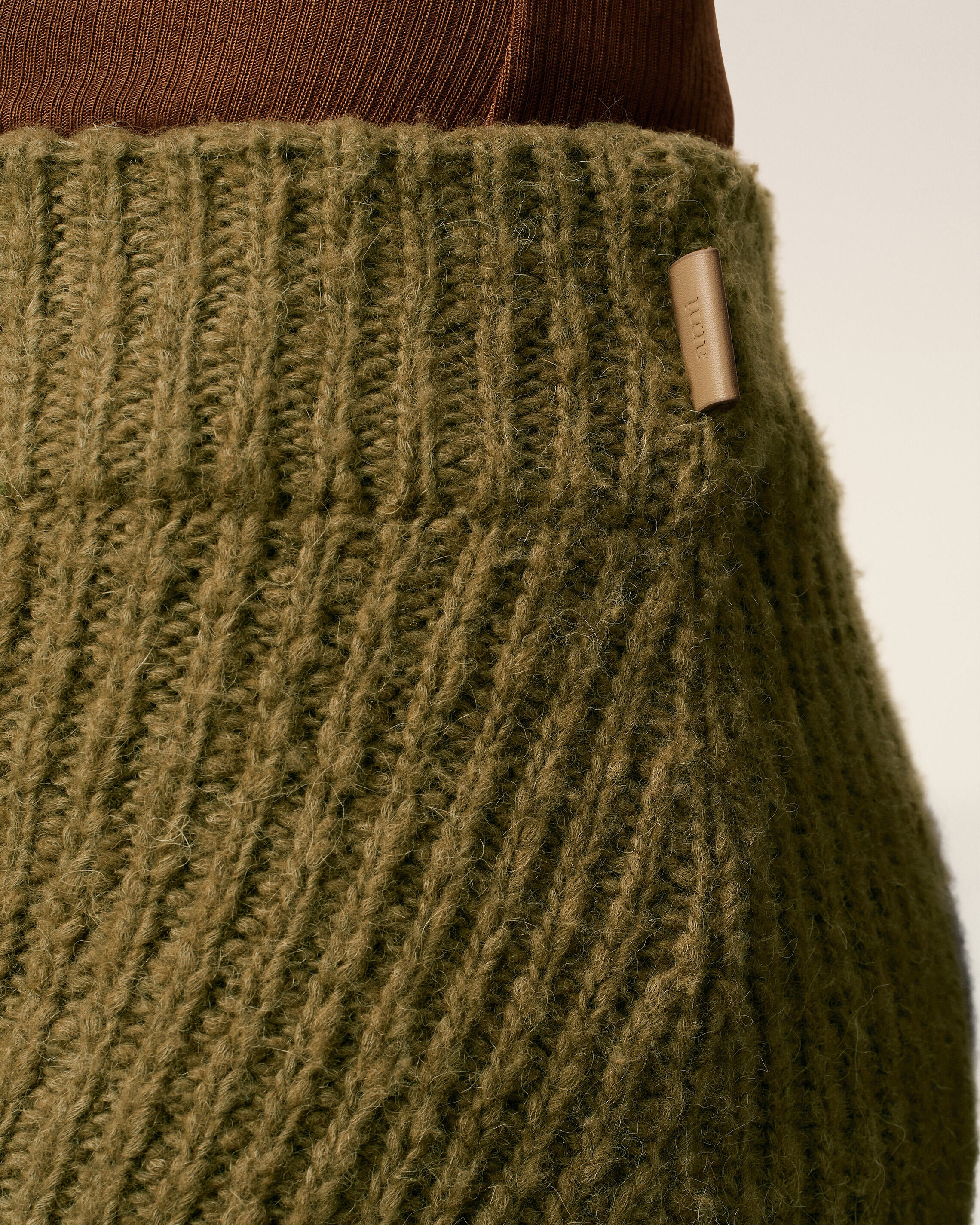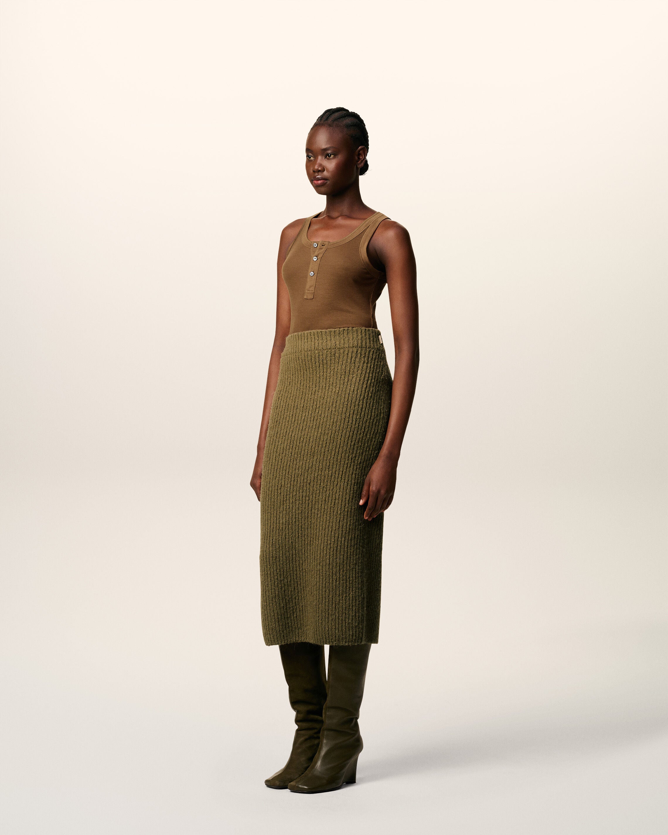 Midi-Wickelrock aus grauer Wolle mit Fischgrätmuster