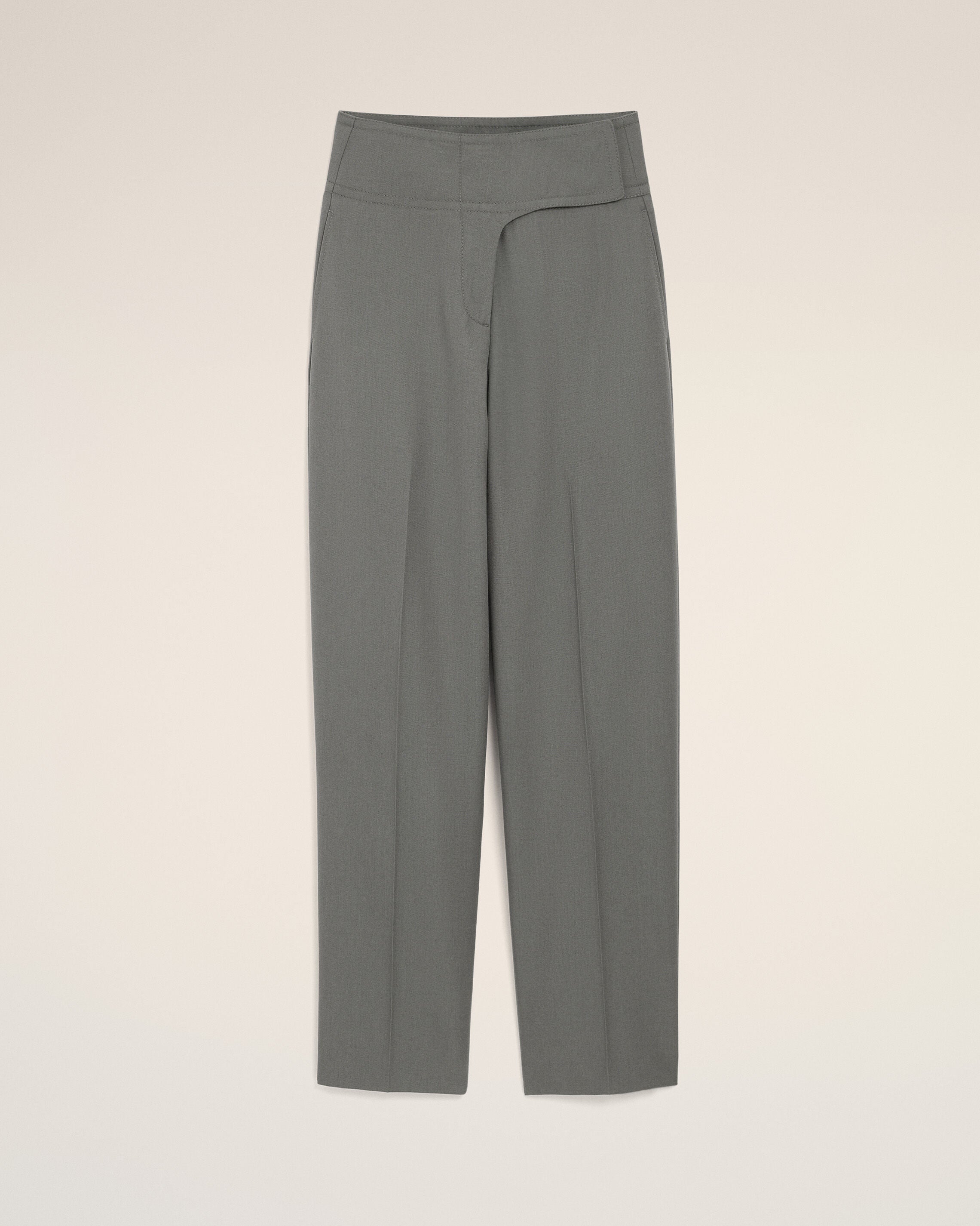 Pantalon à ceinture portefeuille coupe ballon en toile de laine.