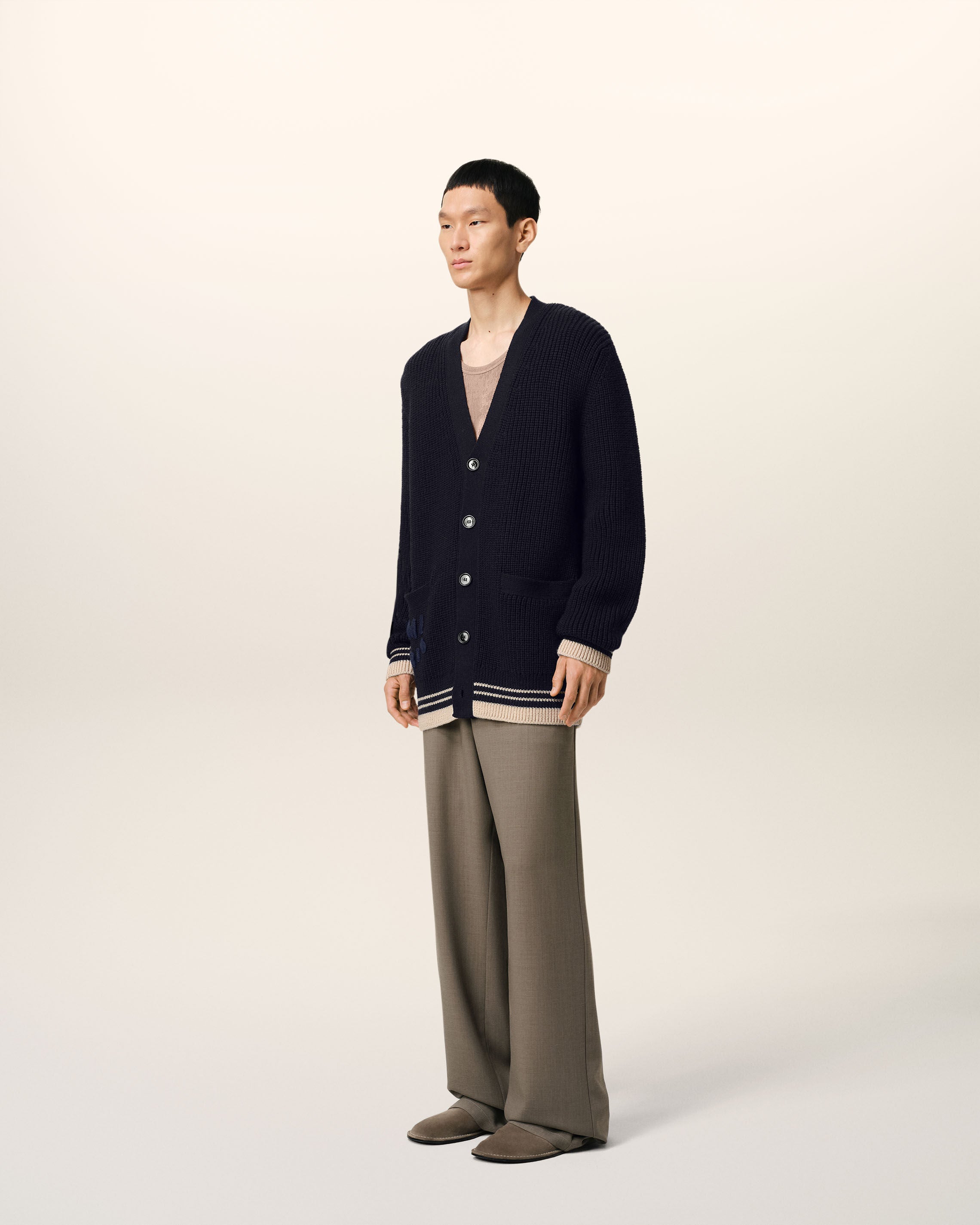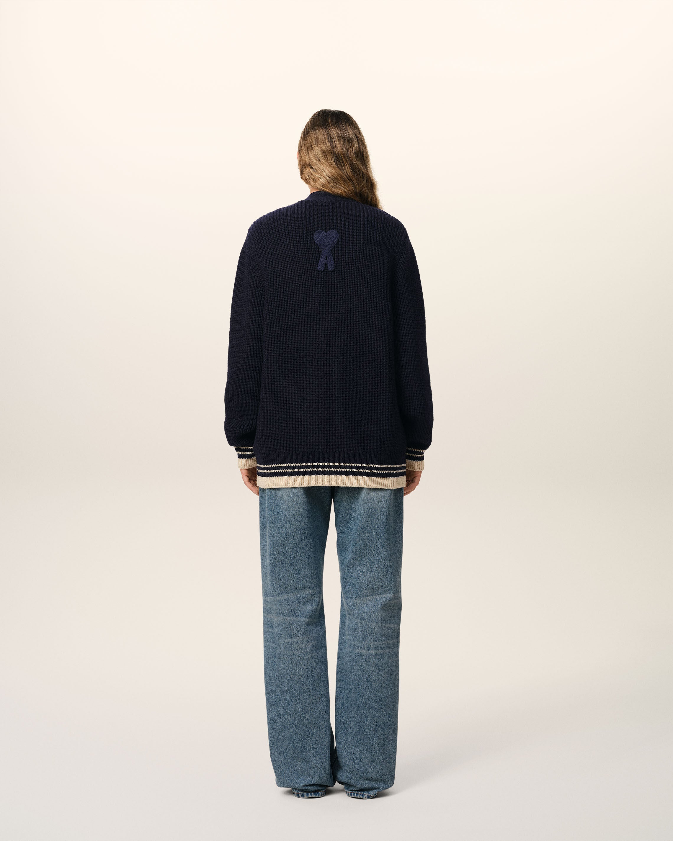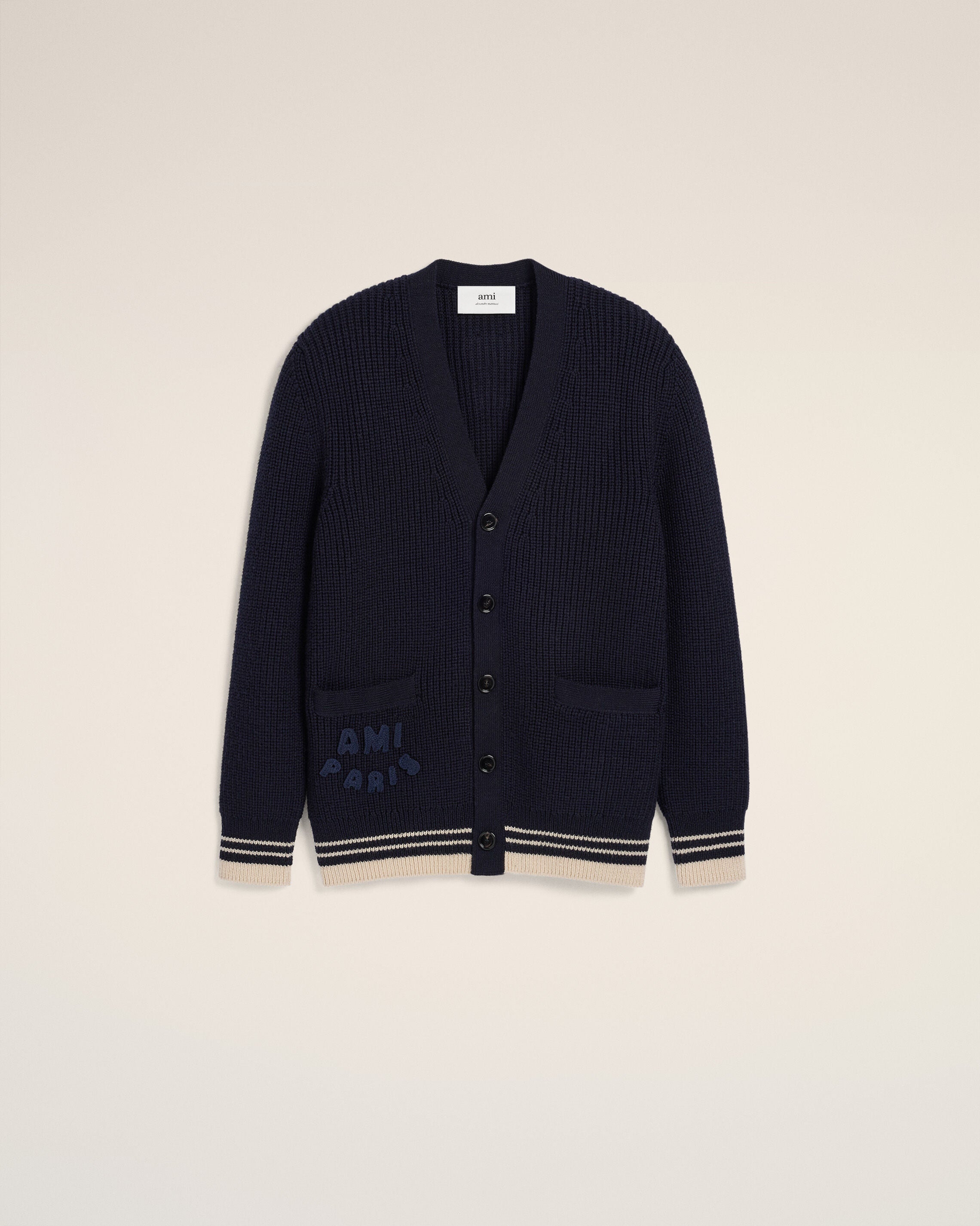 Gestrickter „AMI Paris“ Aufnäher unter der rechten Tasche gestickt