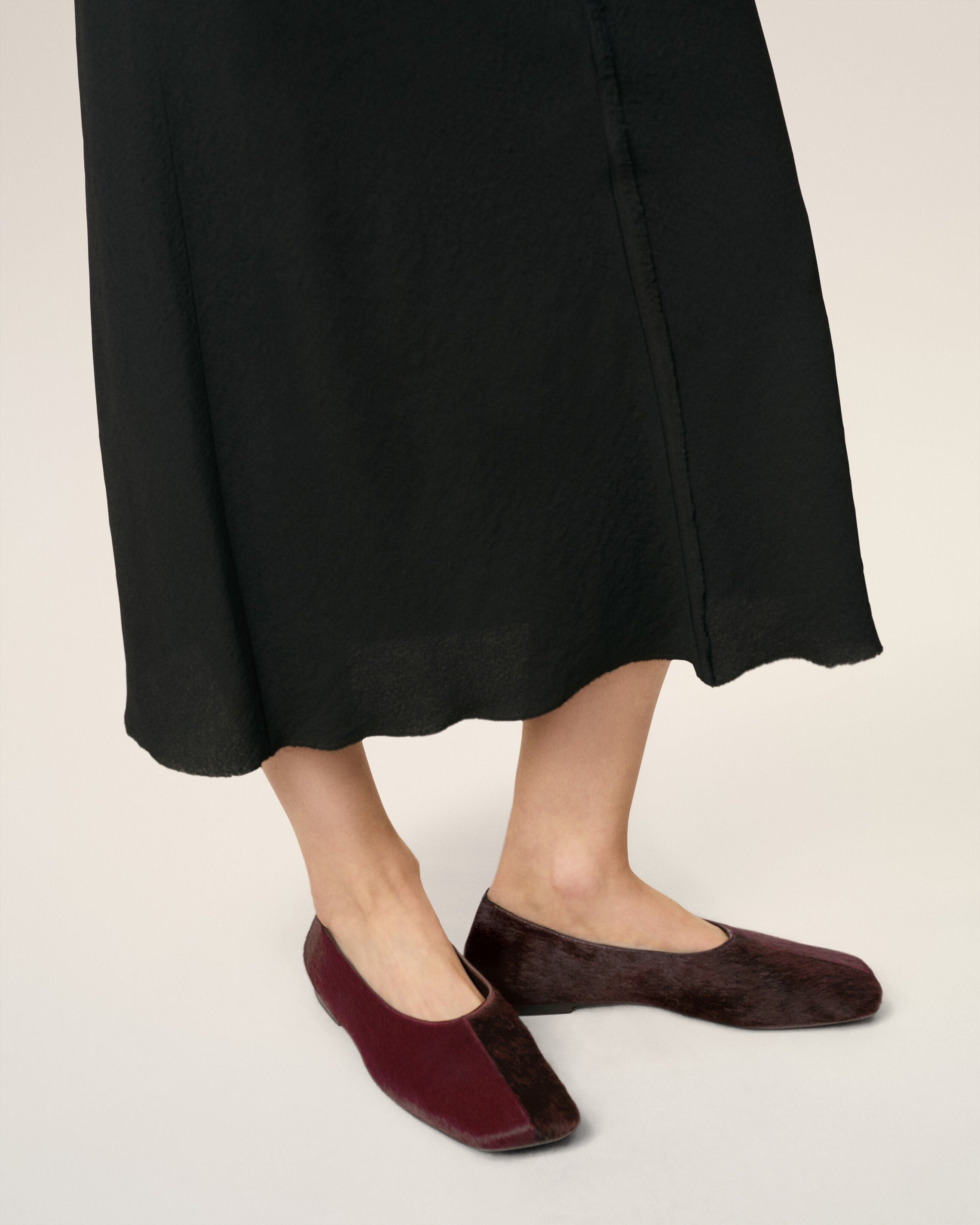 Zweifarbige Ballerinas aus Rindsleder mit Ponyfelloptik.