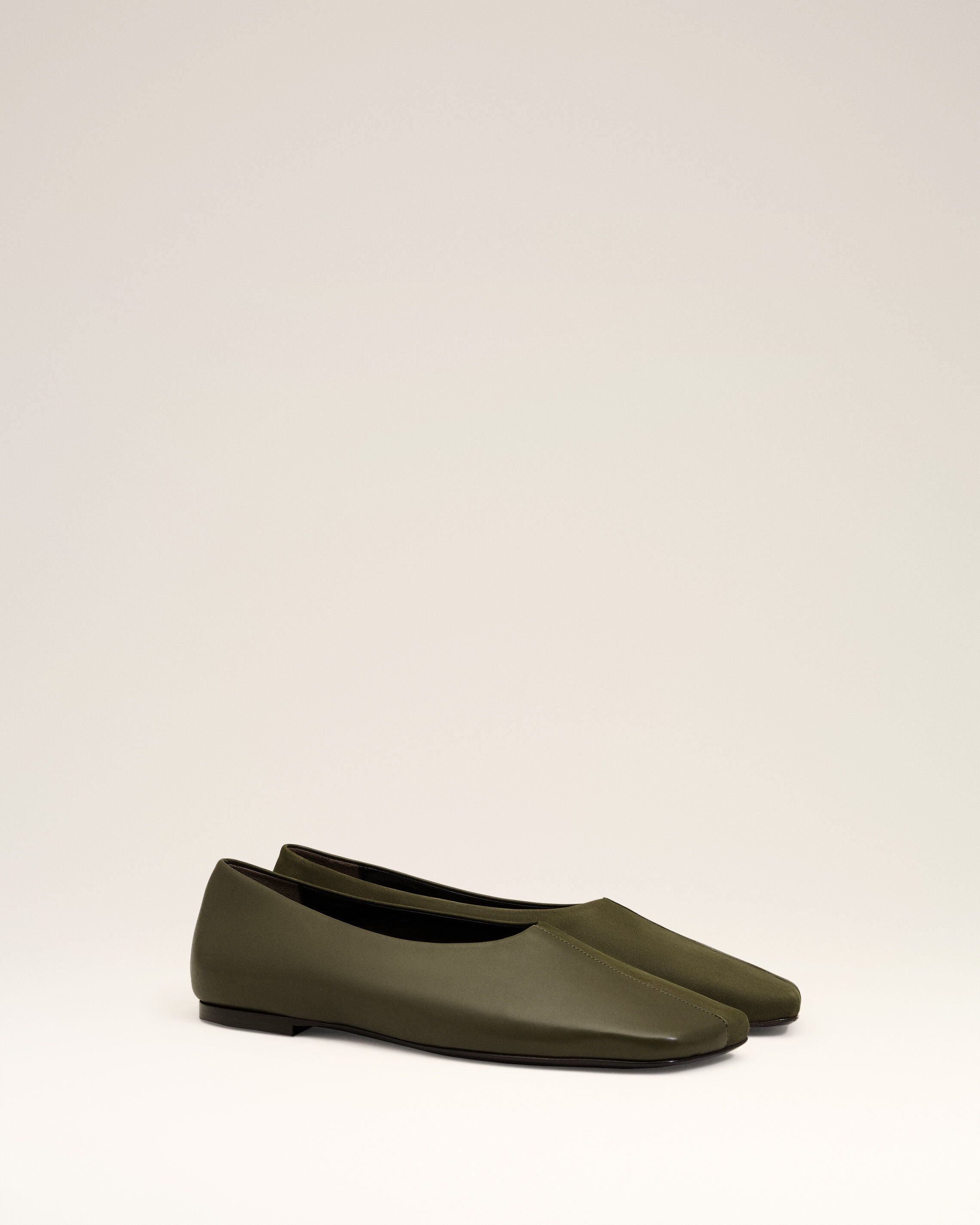 Zweifarbige Ballerinas aus grünem Leder