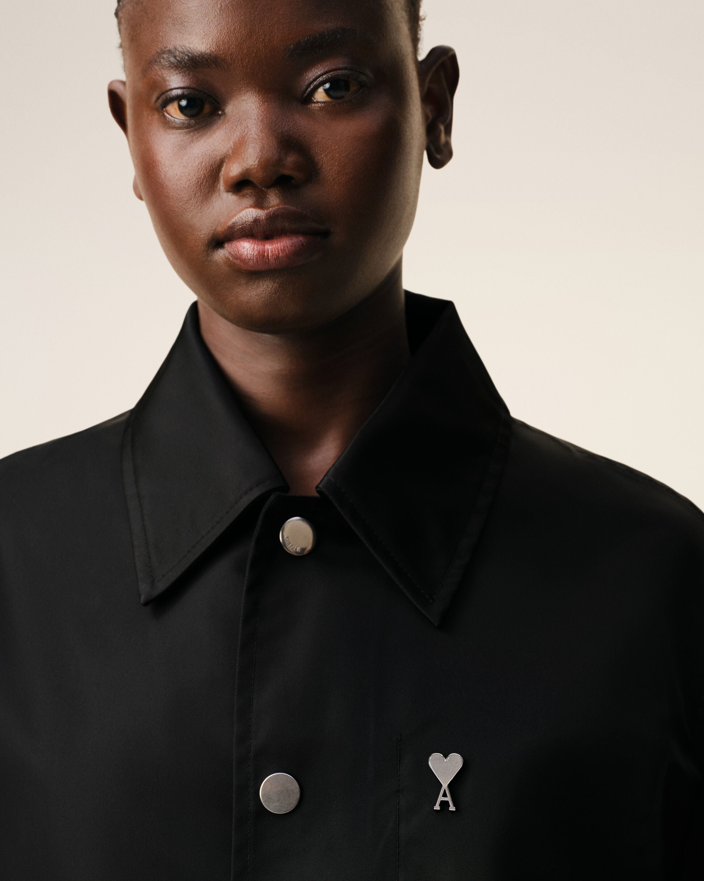 First snap button in nickel color on the collar with ami banding