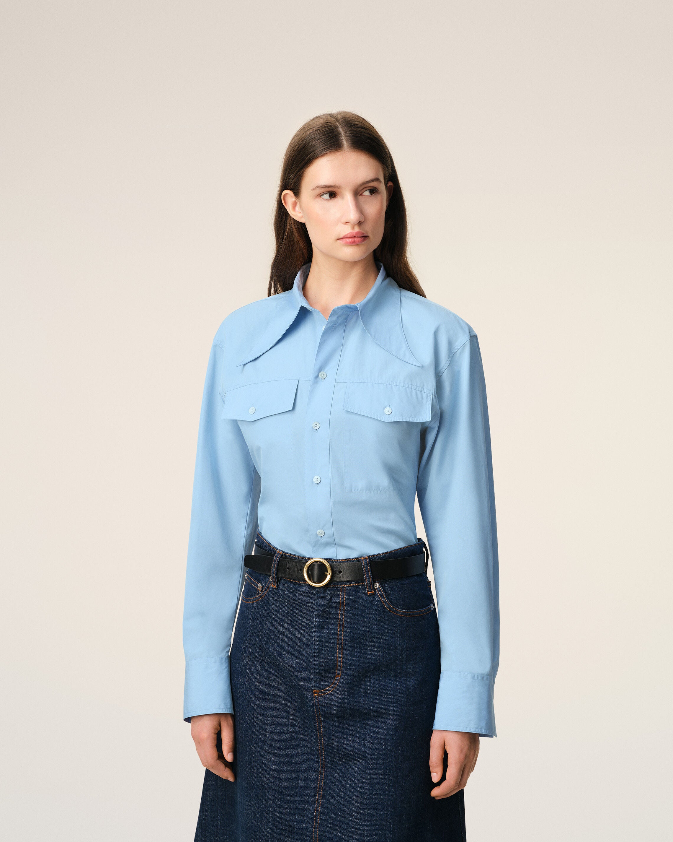 Balloon sleeve shirt in cotton poplin.