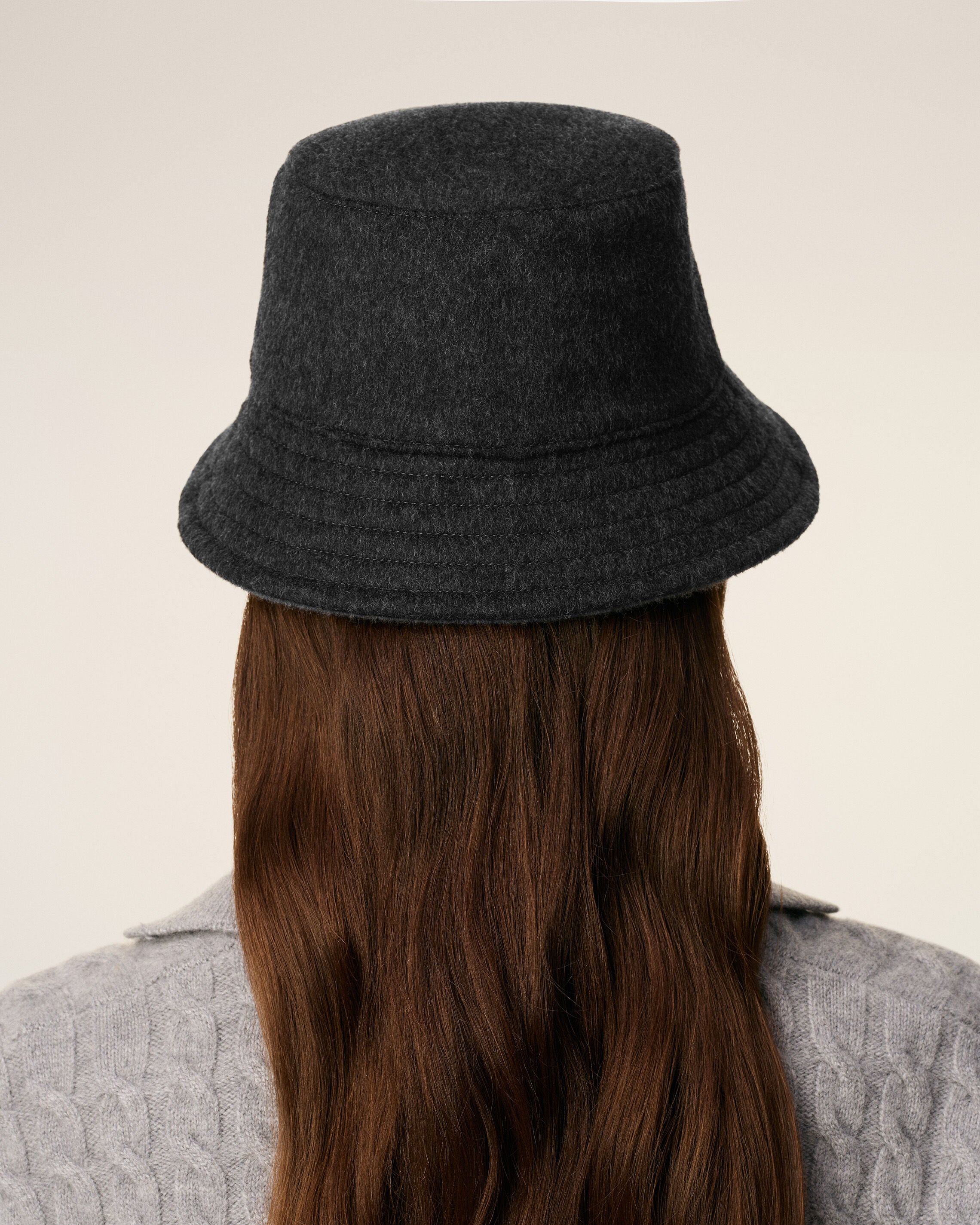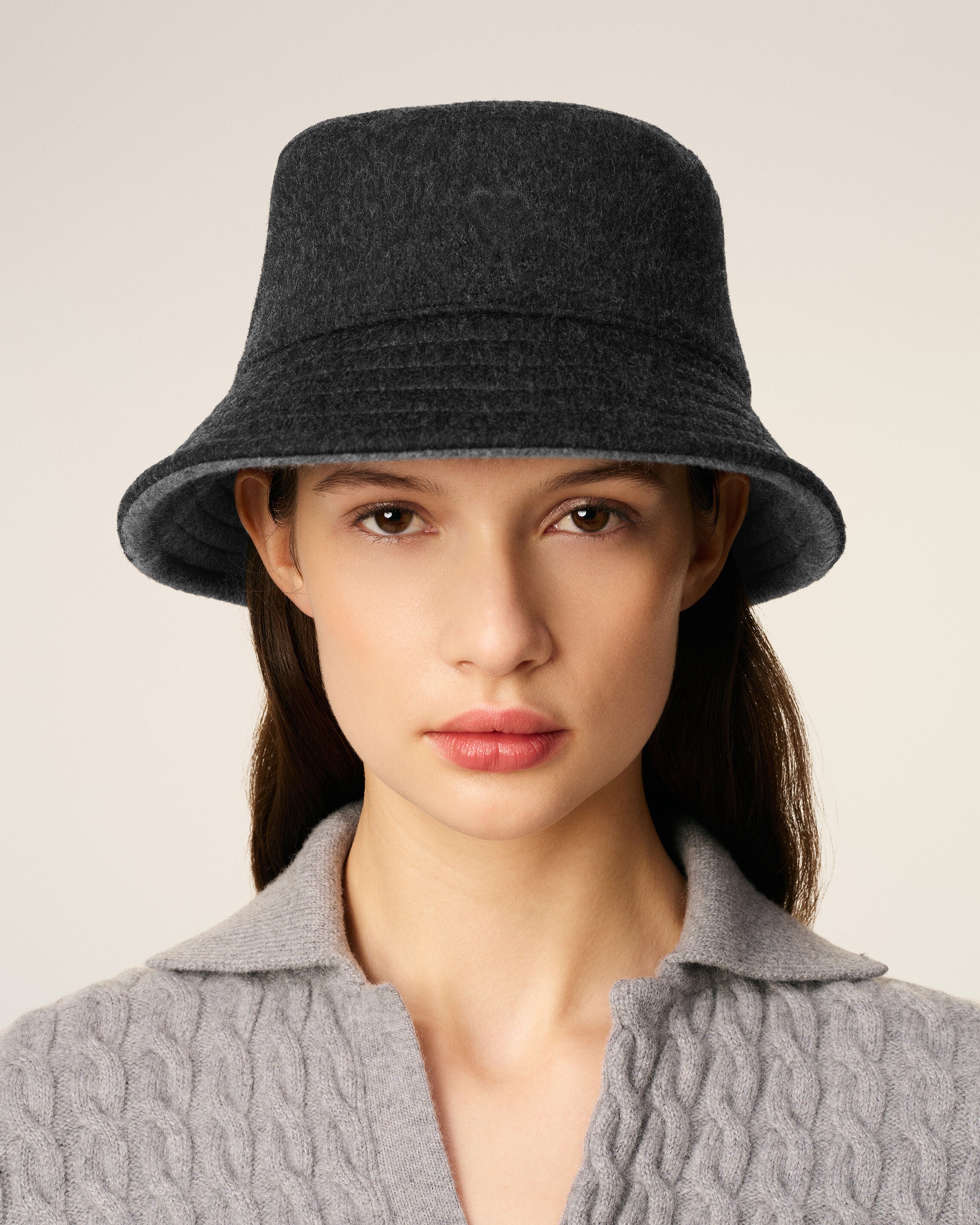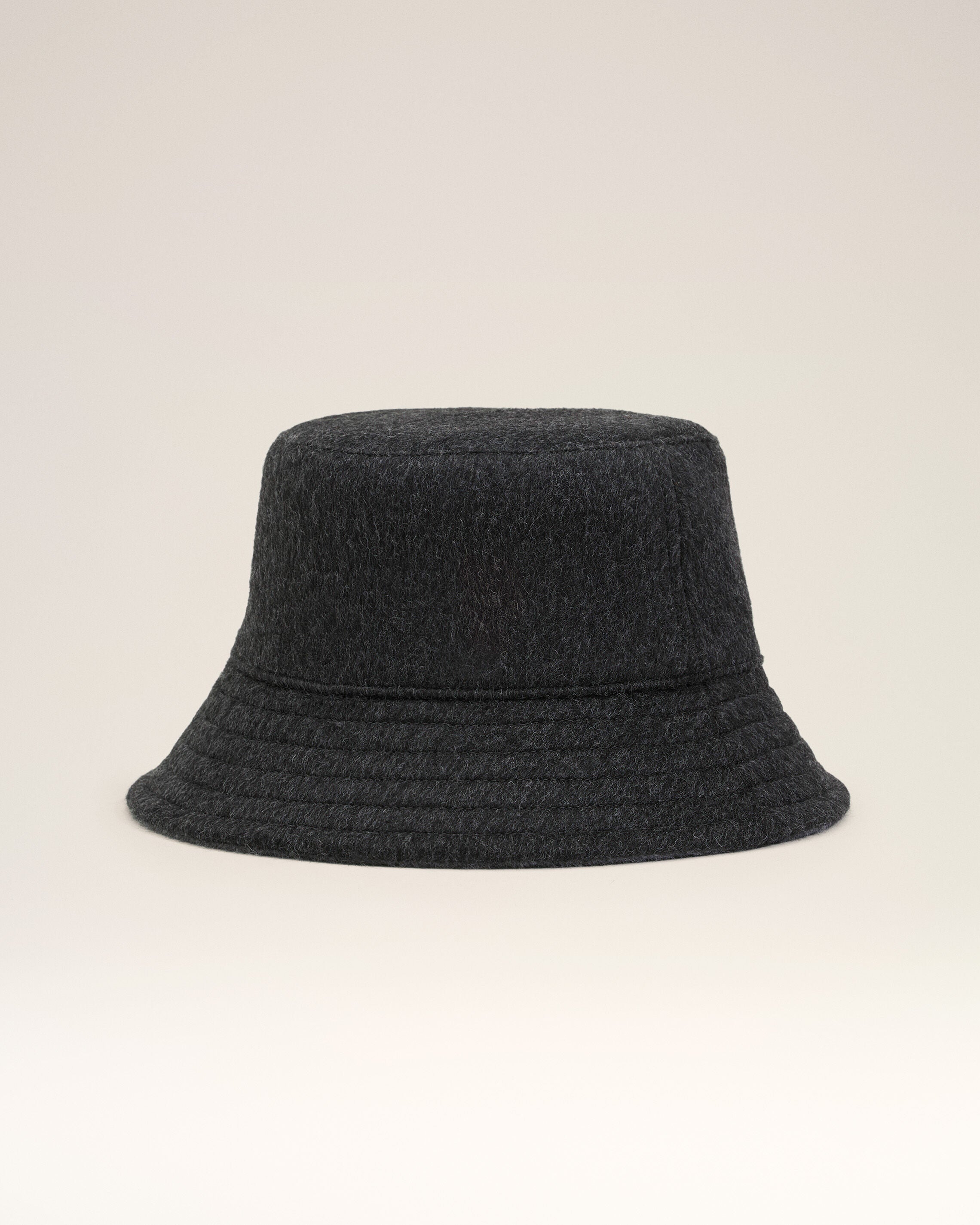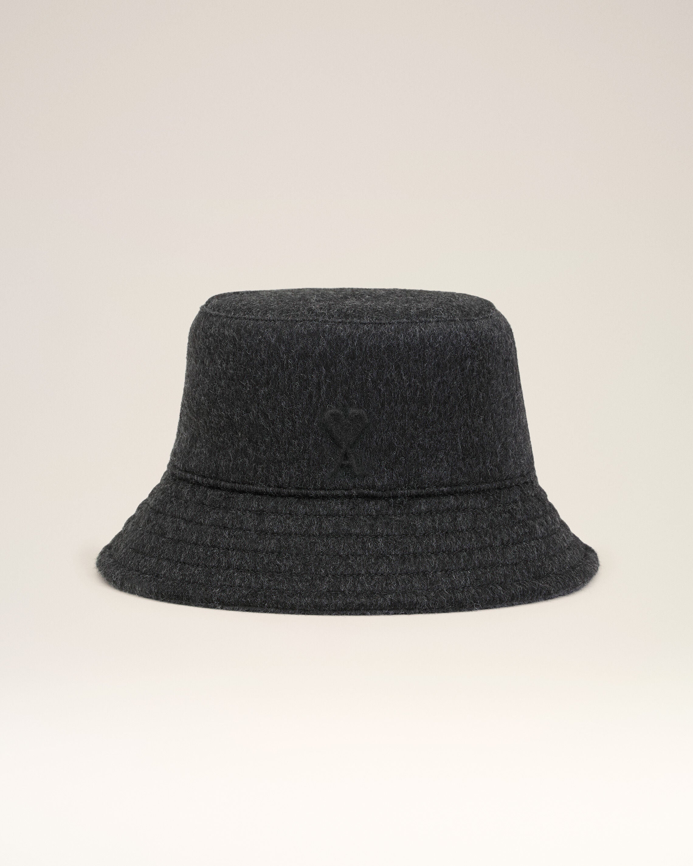 Black Wool Embossed Ami De Coeur Bucket Hat