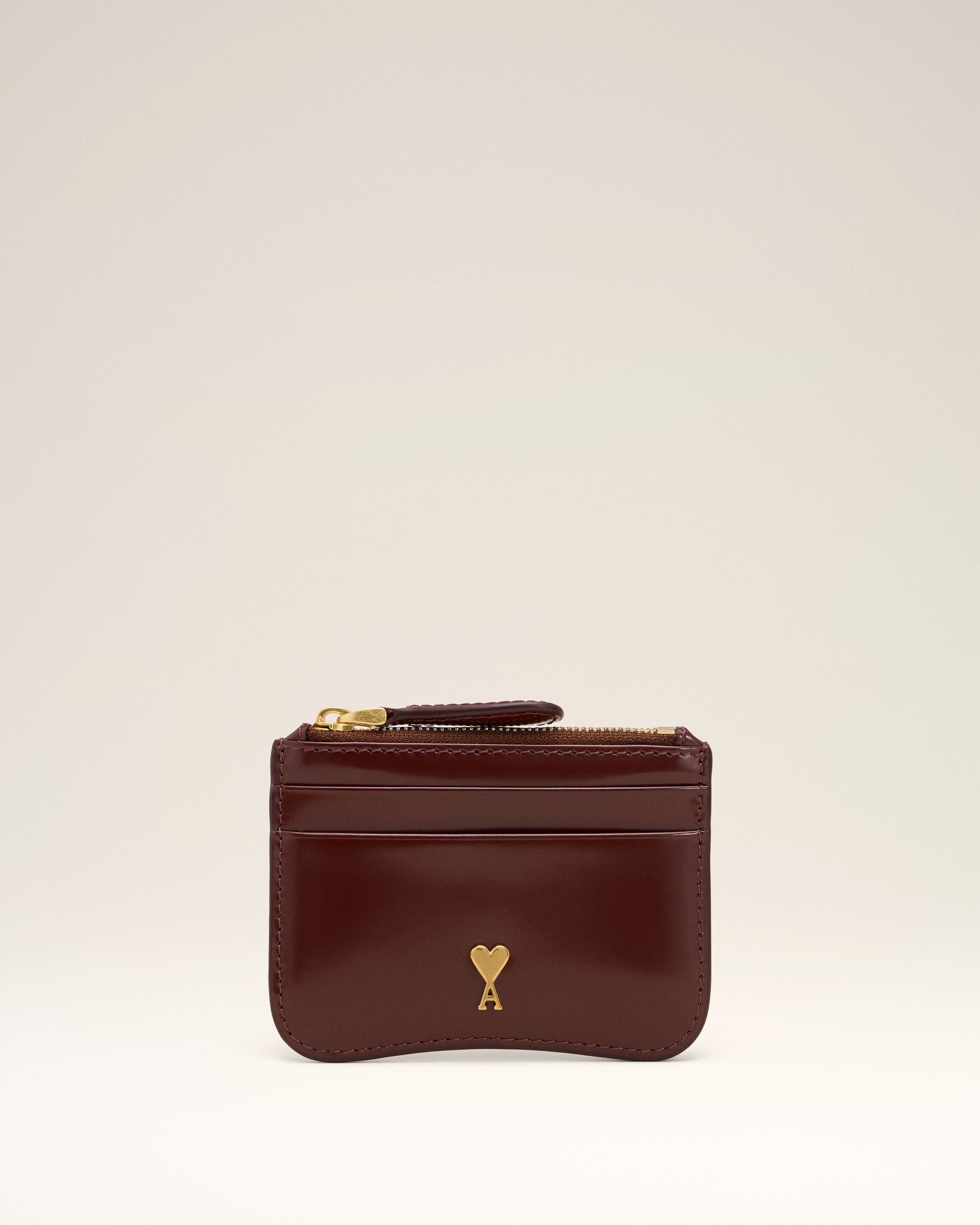 Burgundy Glazed Leather Paris Paris Zipped Card Holder