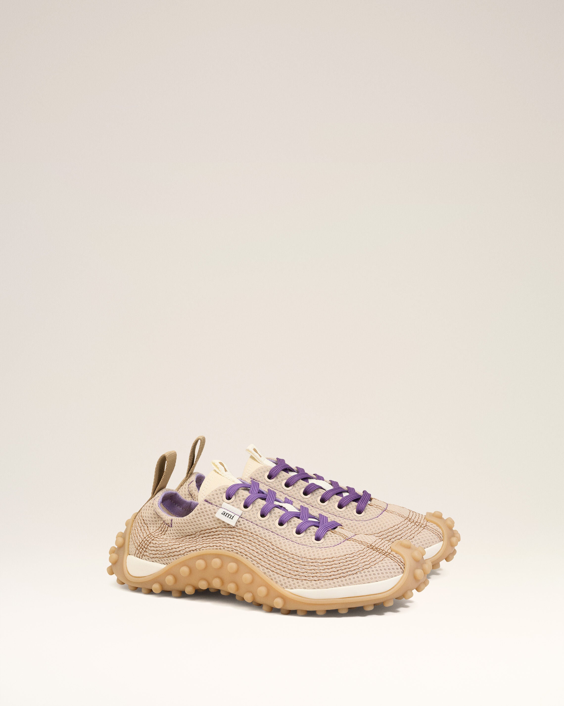 Contrasted stitching highlighty the dynamic silhouette of the sole