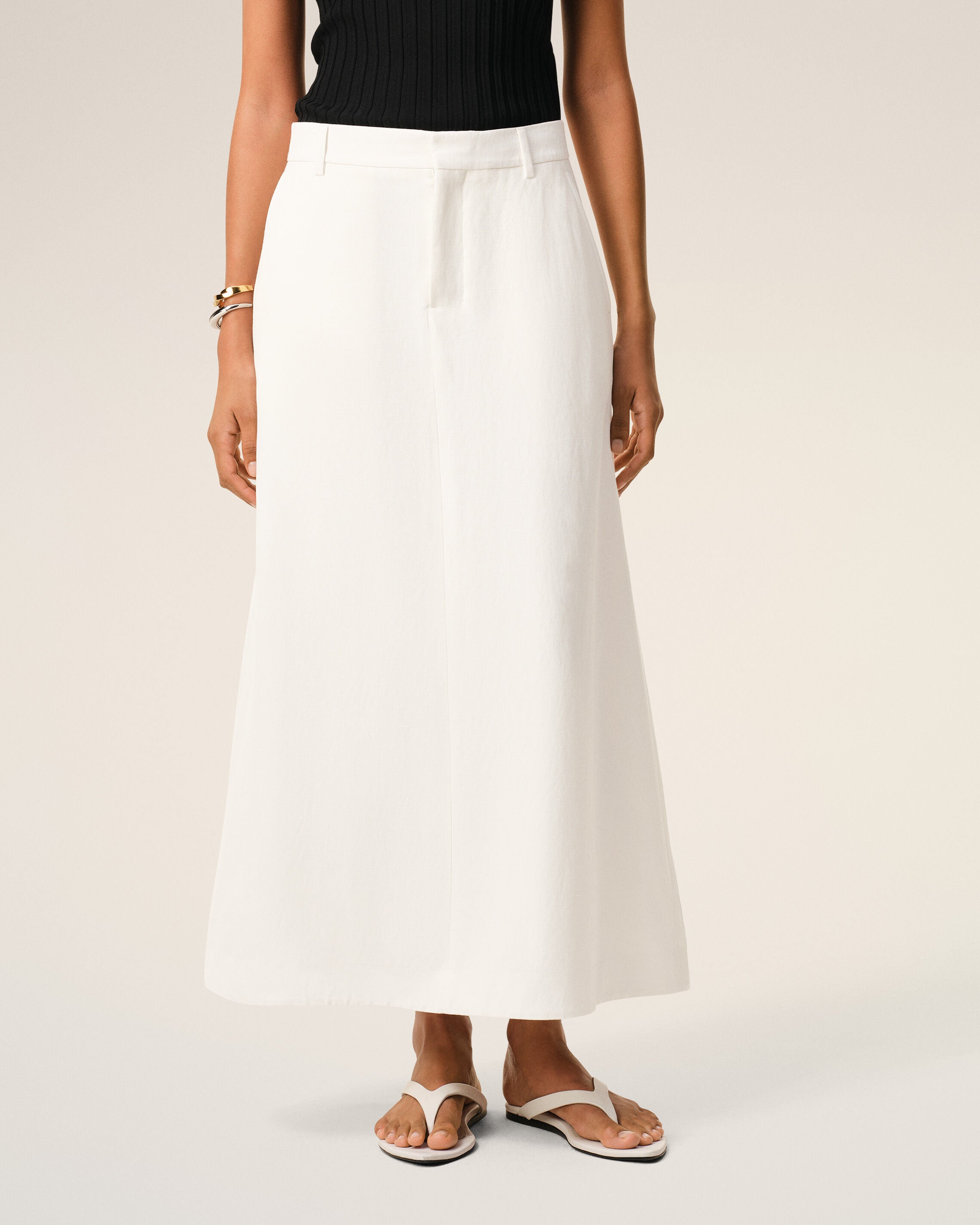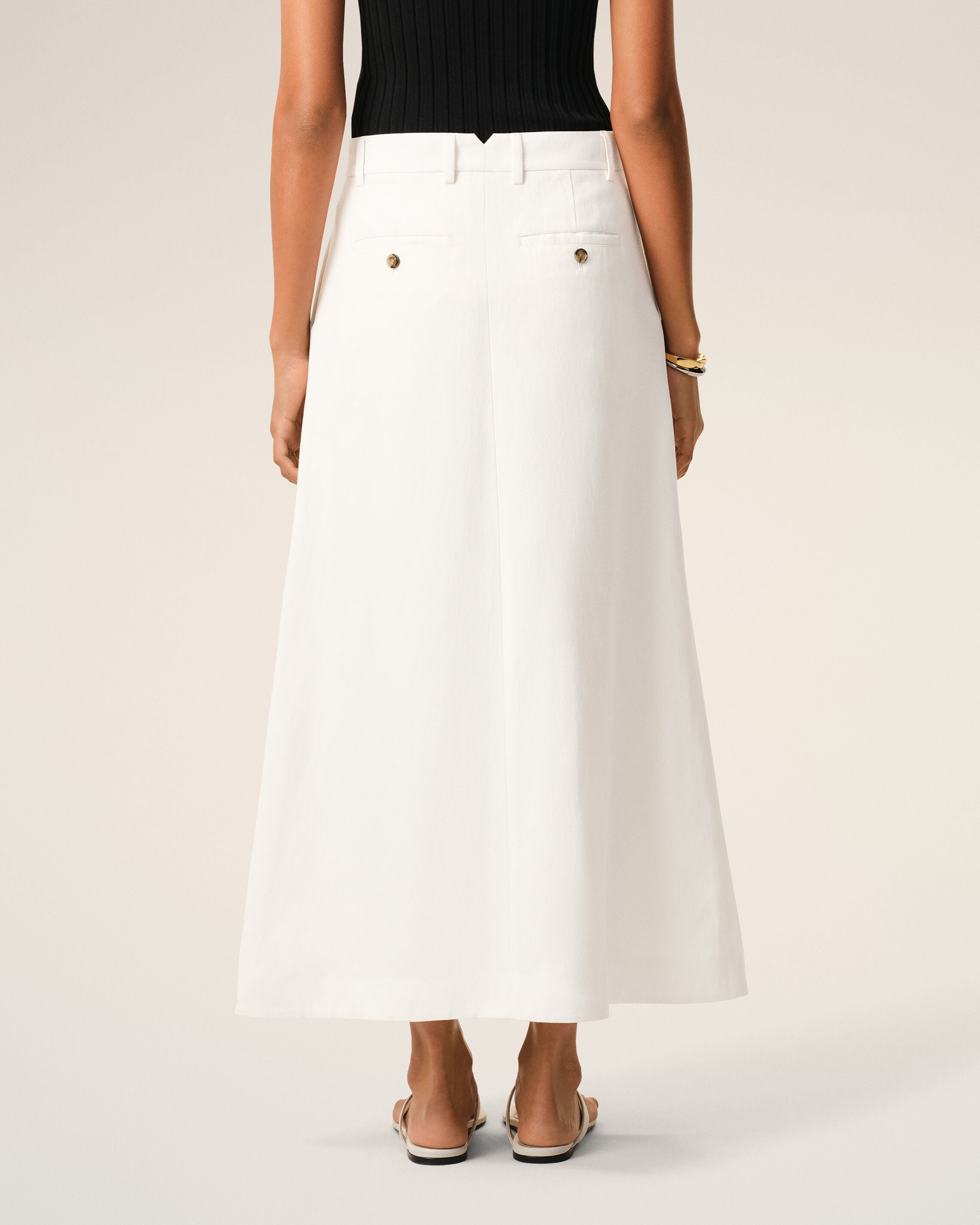 White Blended Linen Tailor Construction Long Trapeze Skirt