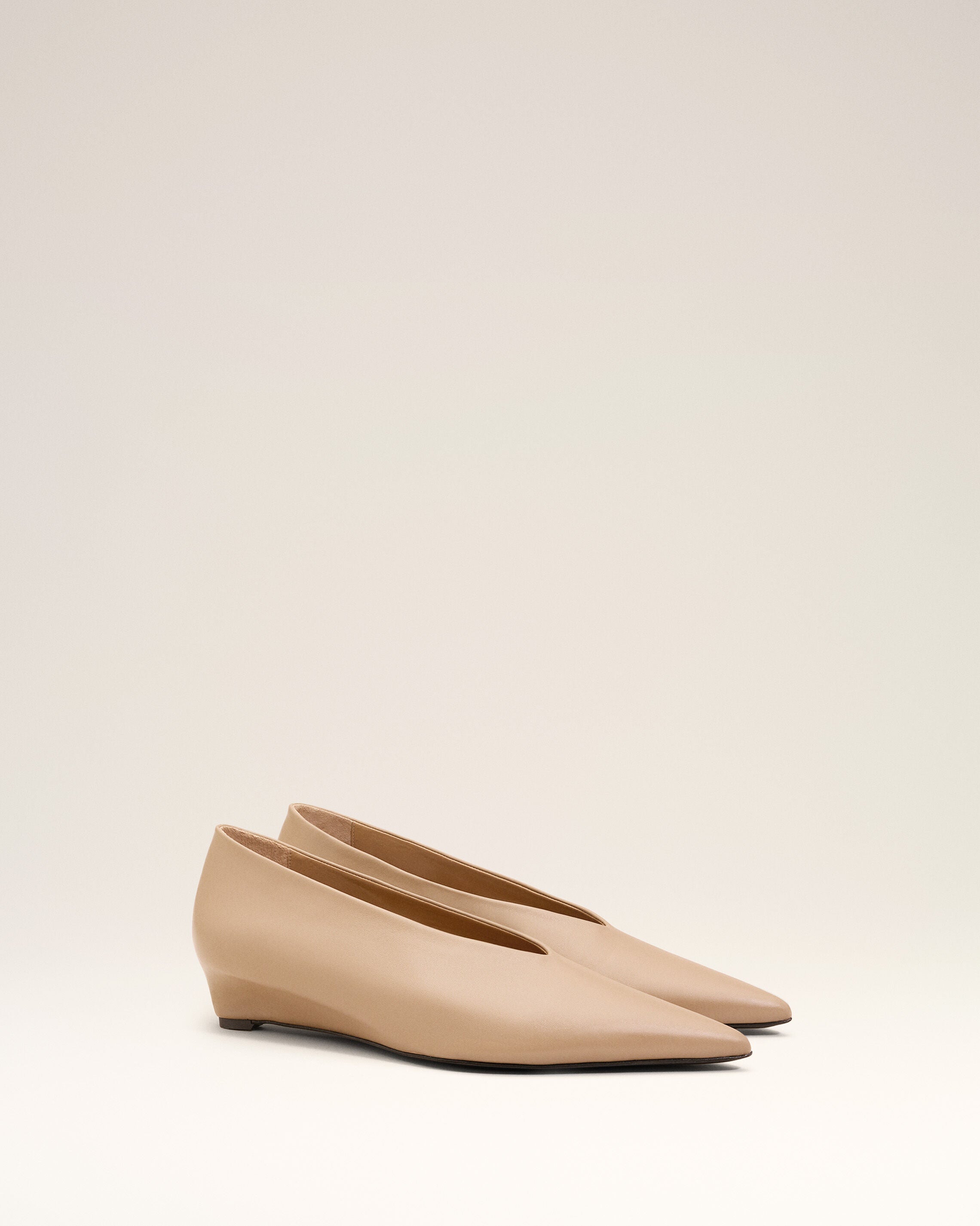 Beige Lamb Leather Pointed Toe Wedge Pump