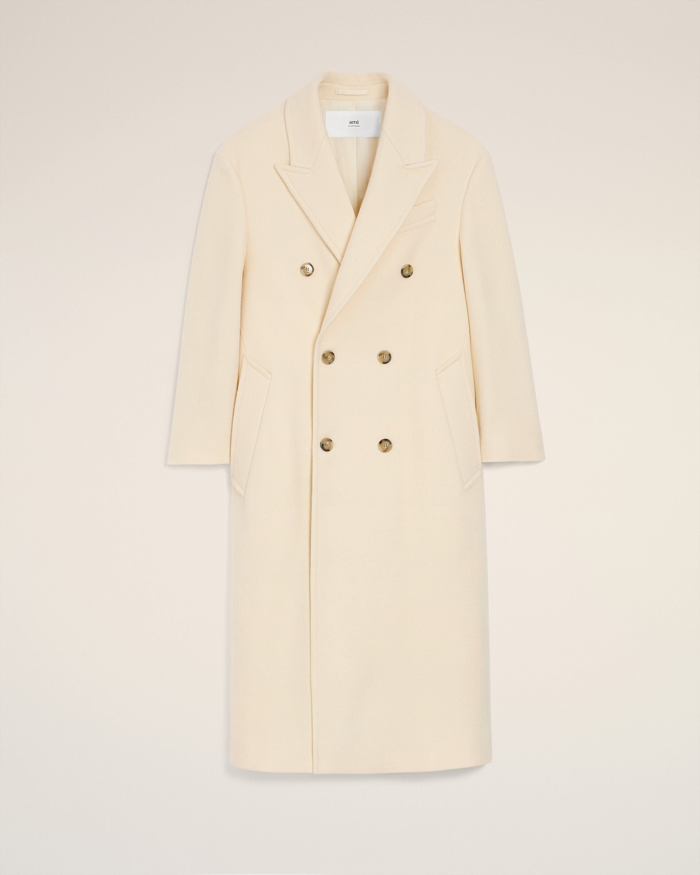 White Wool Double Breasted Long Coat