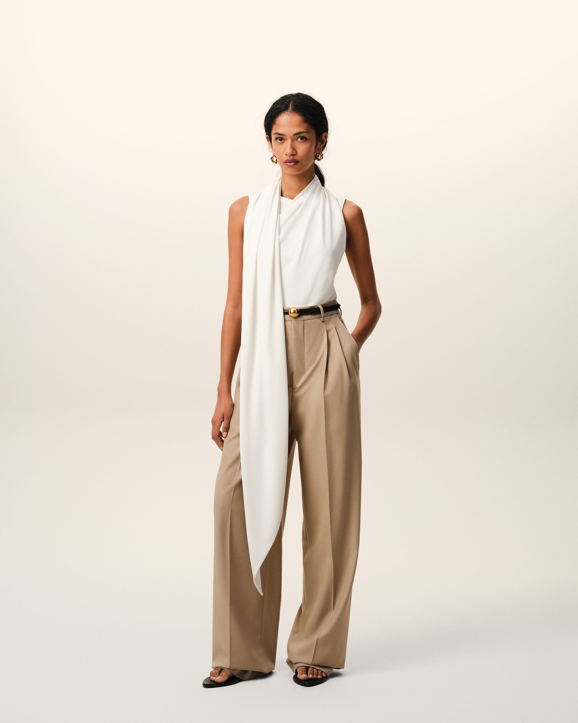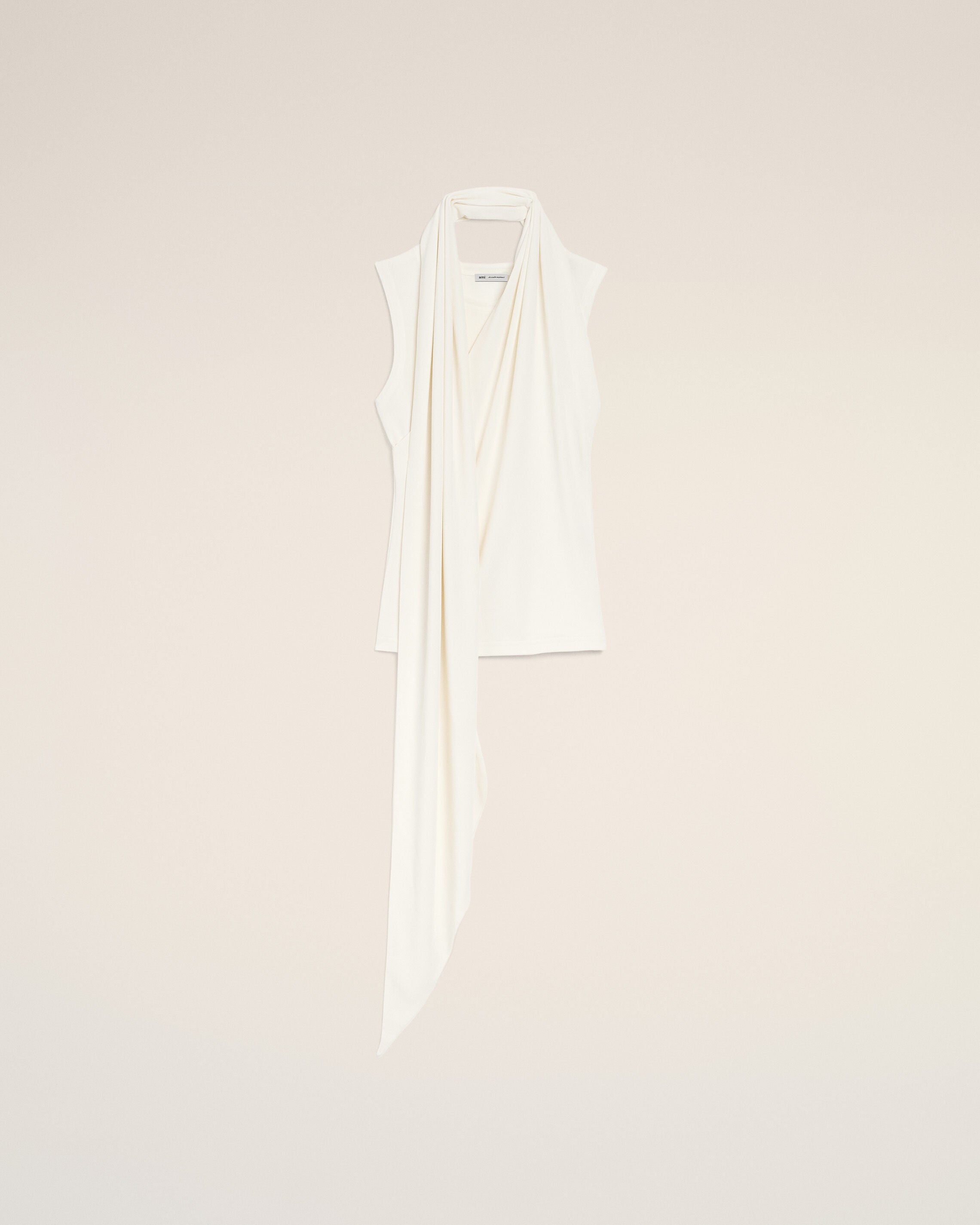 White Jersey Sleeveless Lavalliere Top