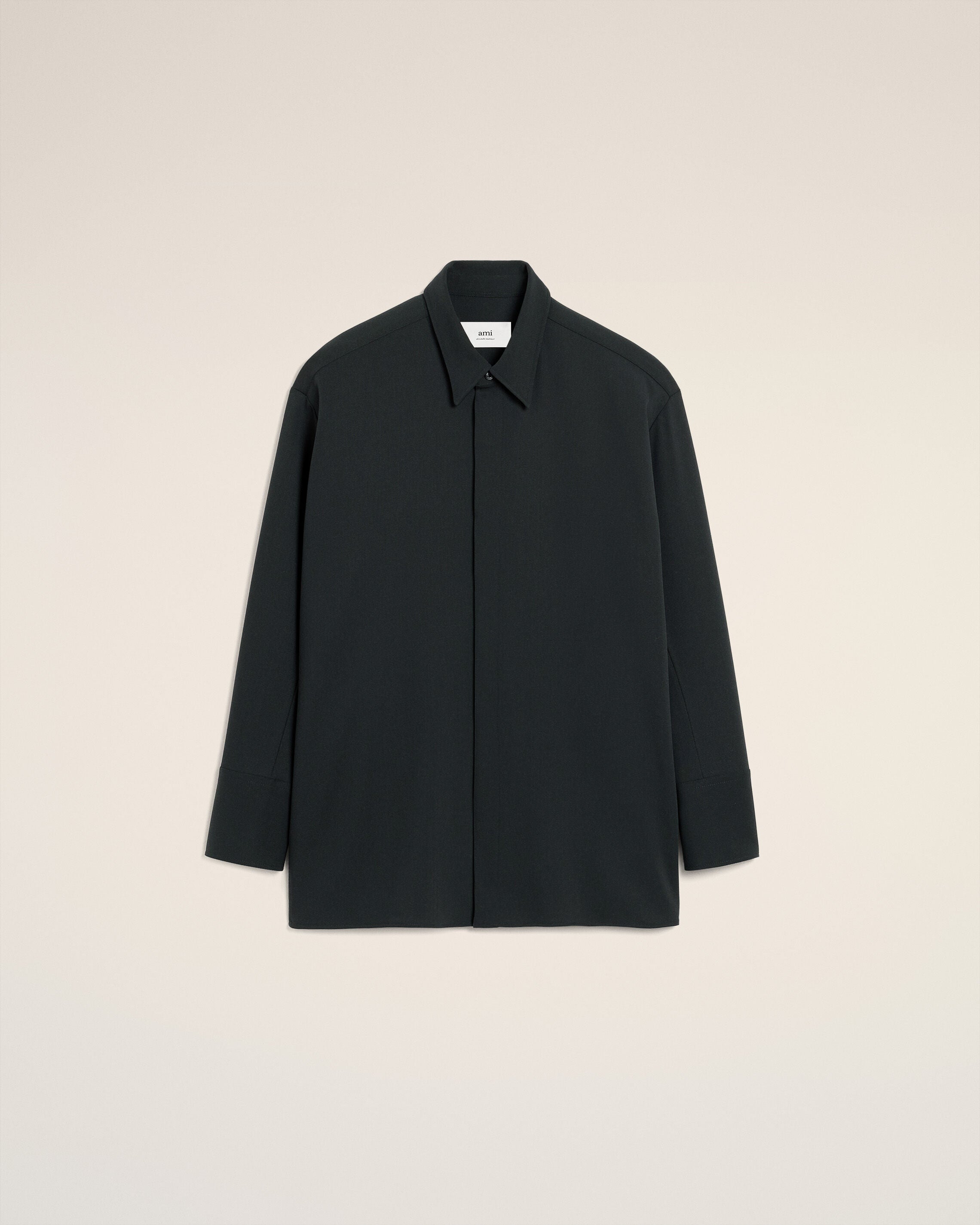 Black Wool Long Oversized Shirt