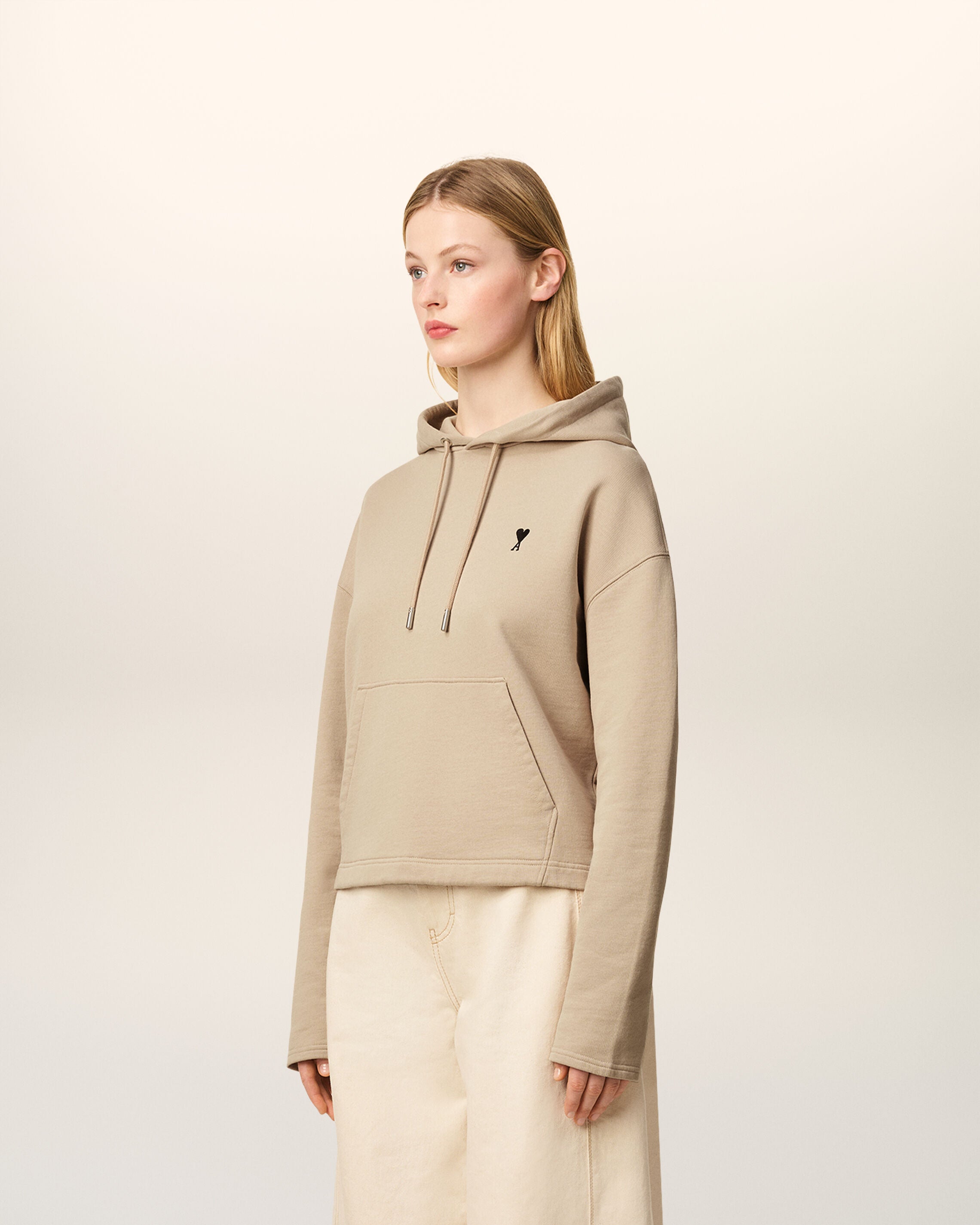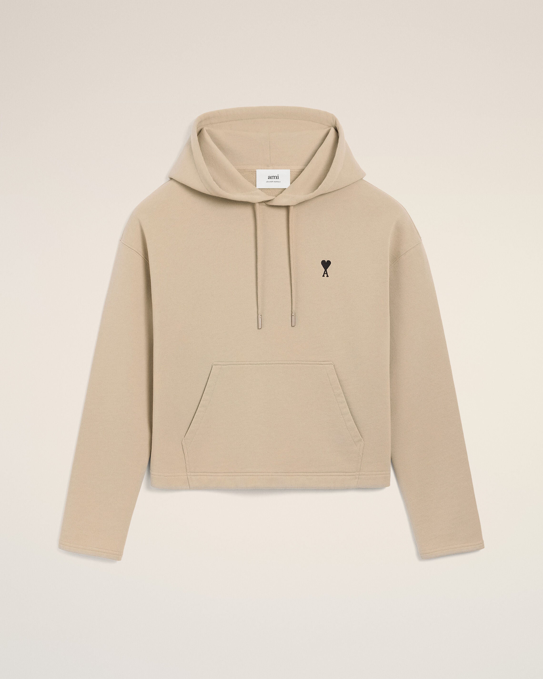Beige Cotton Contrasted Ami De Coeur Hoodie