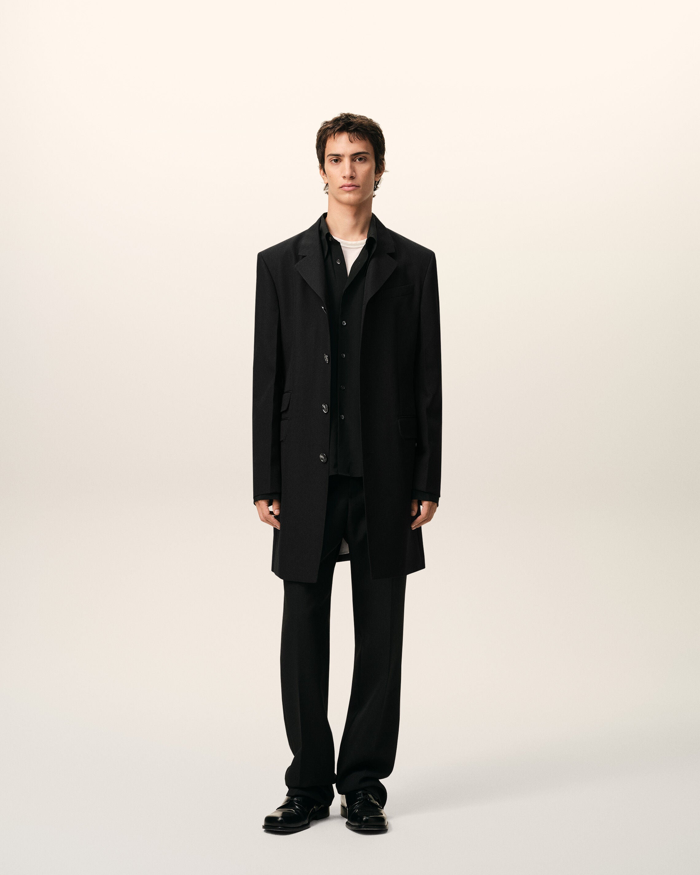 Single breasted jacket in wool canvas.