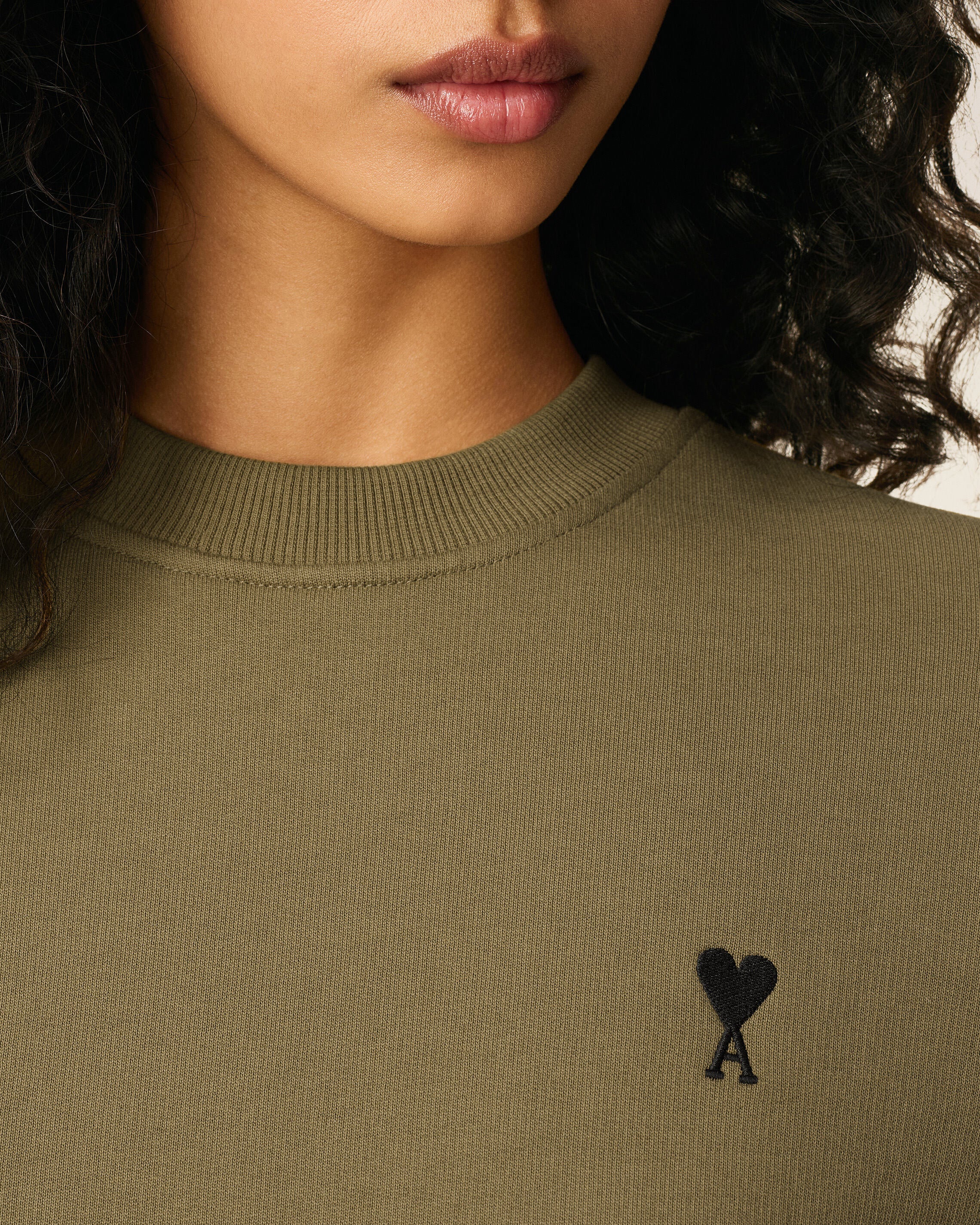 Tonal "ami" embroidery under back neckline