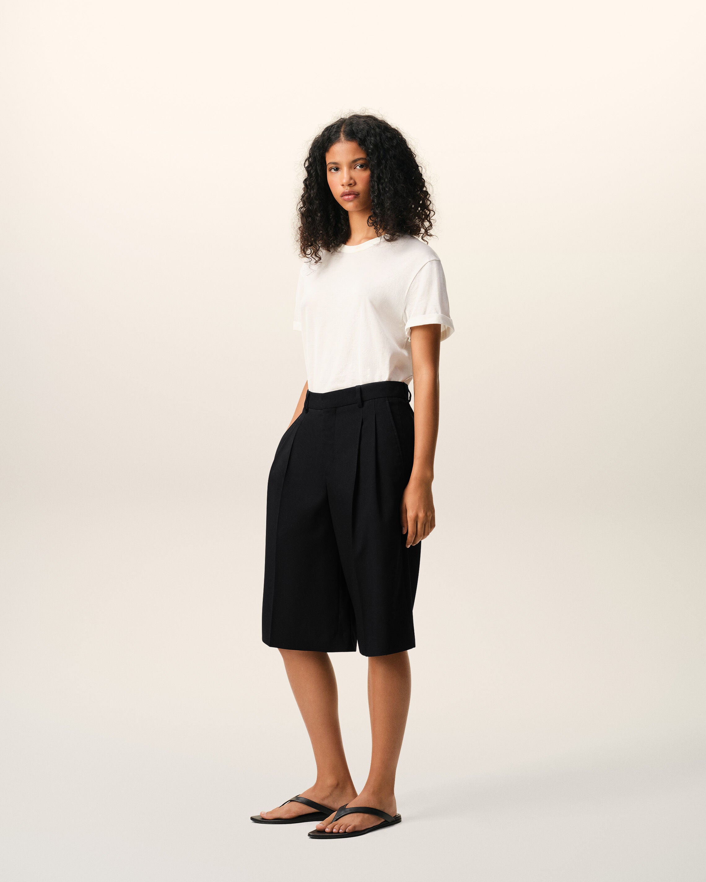 High waist two pleats wide bermuda in wool gabardine.