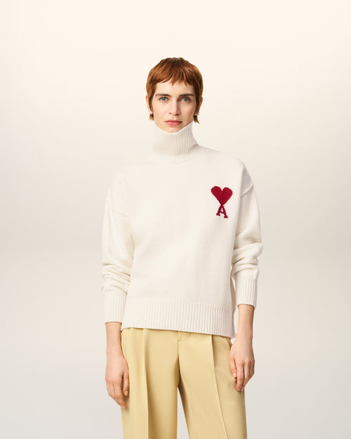 White Wool Ami De Coeur Funnel Neck Sweater