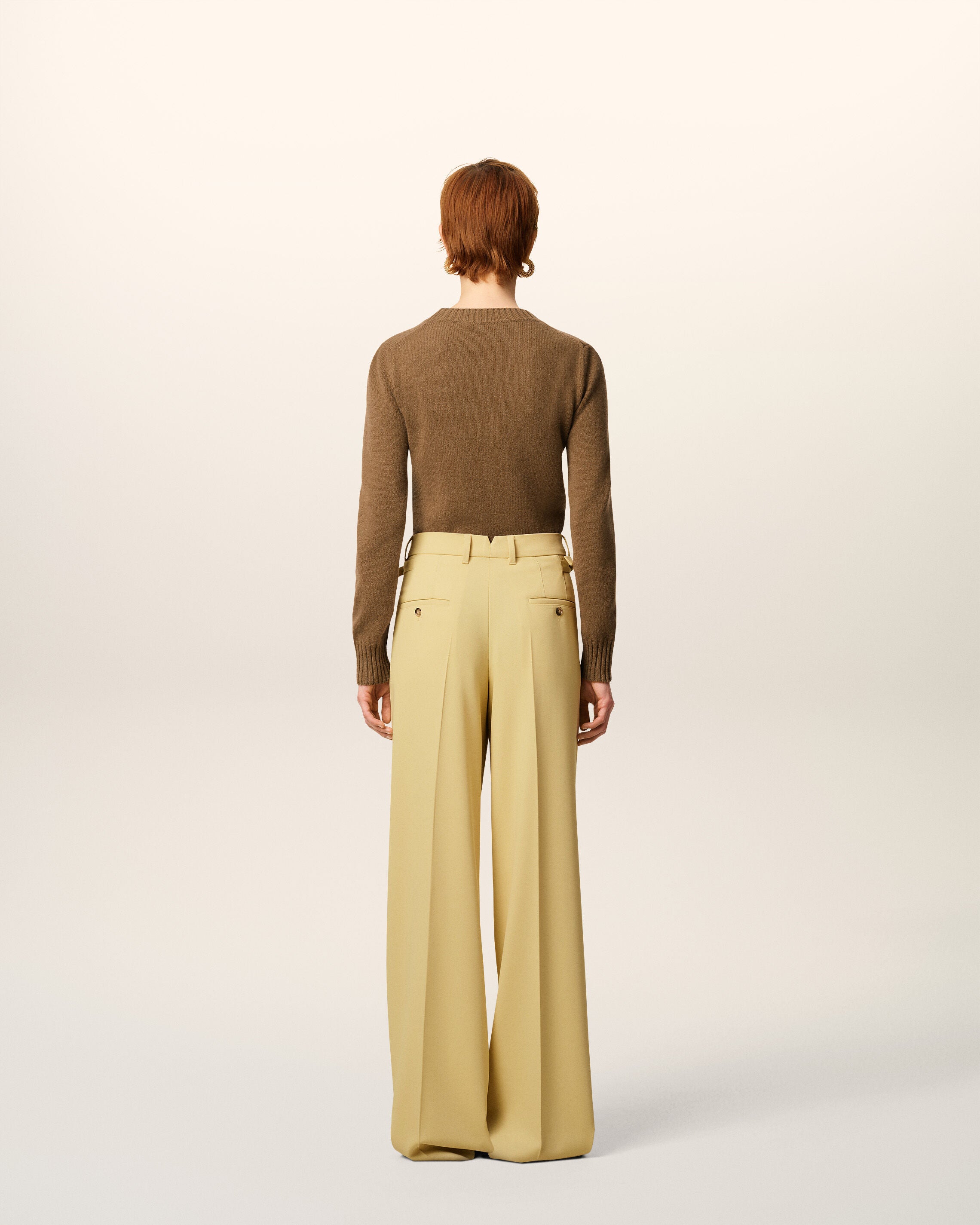 Green Wool Tabs Wide Trousers