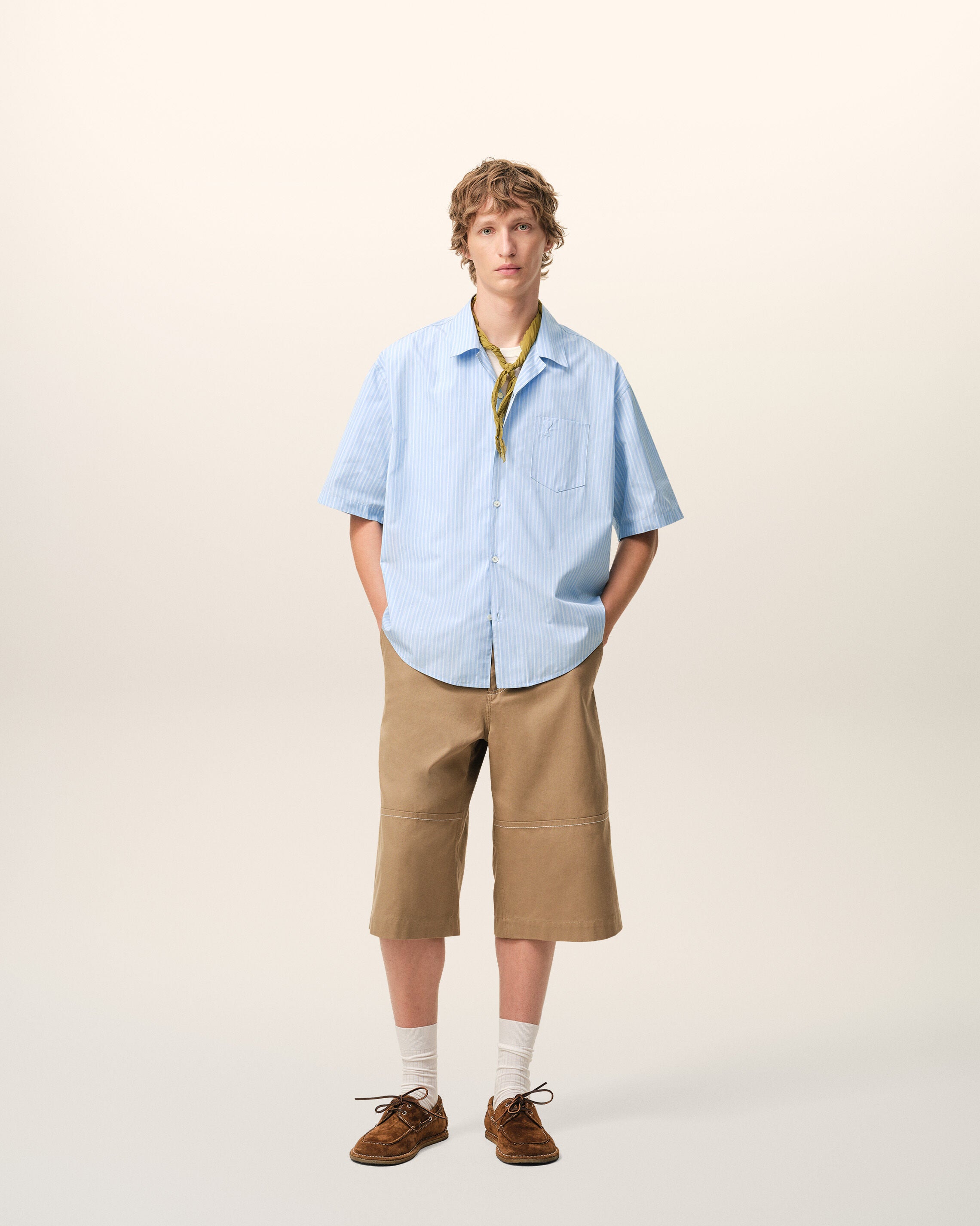 Beige Cotton Worker Bermuda Shorts