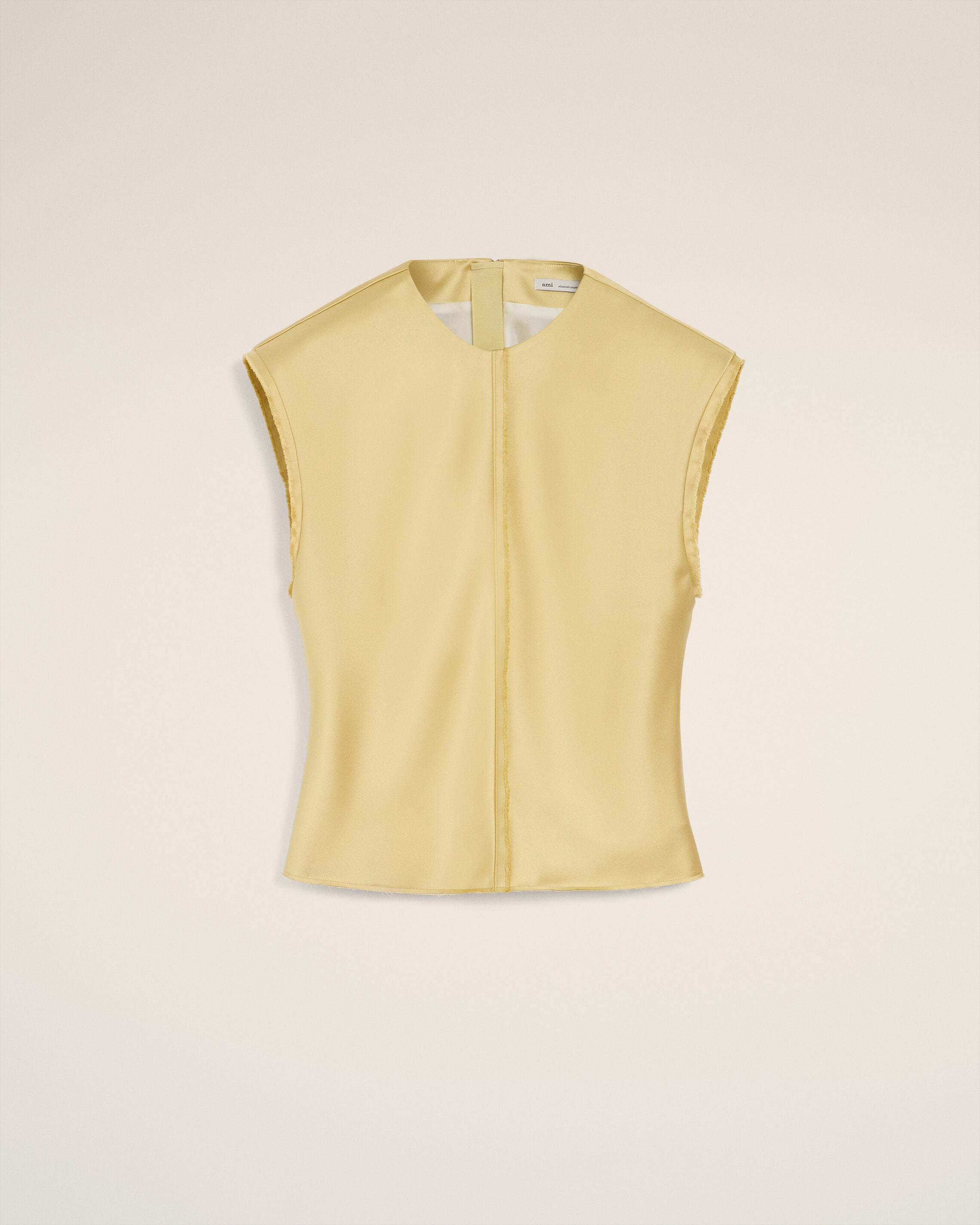 Raw edge finishing at the bottom, armholes and center front