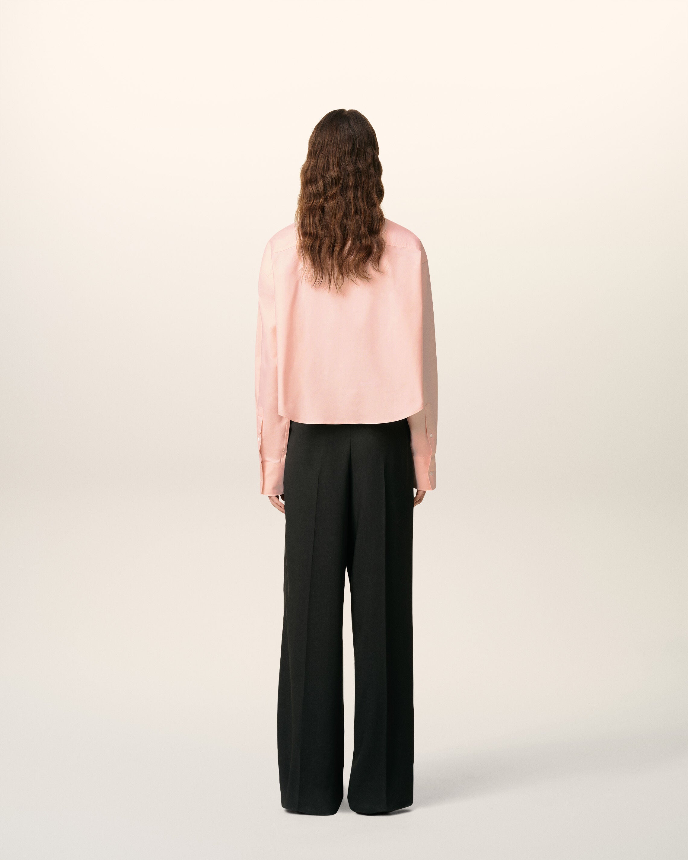 Pink Cotton Ami De Coeur Cropped Oversized Shirt