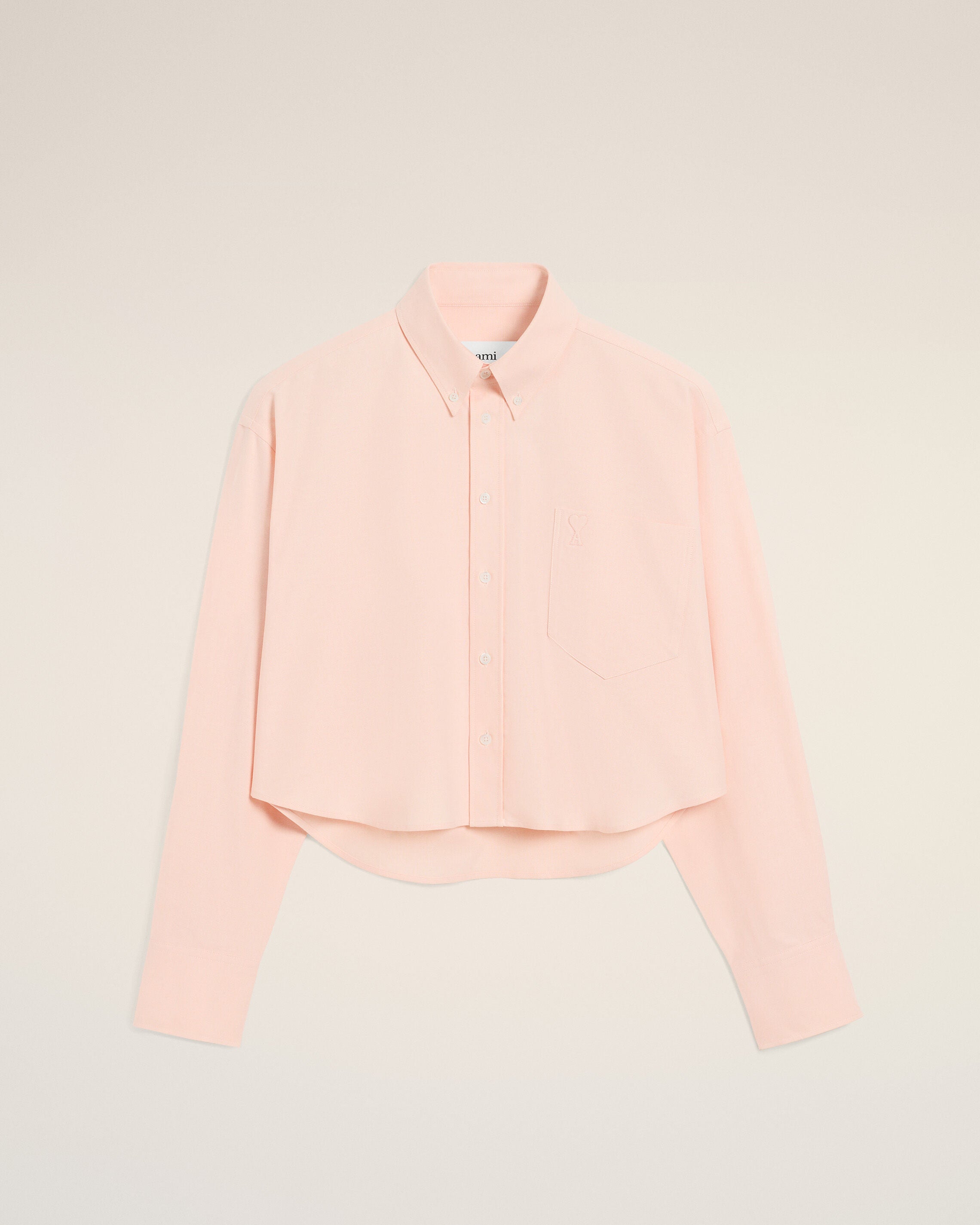 White Cotton Cropped Embossed Ami De Coeur Shirt
