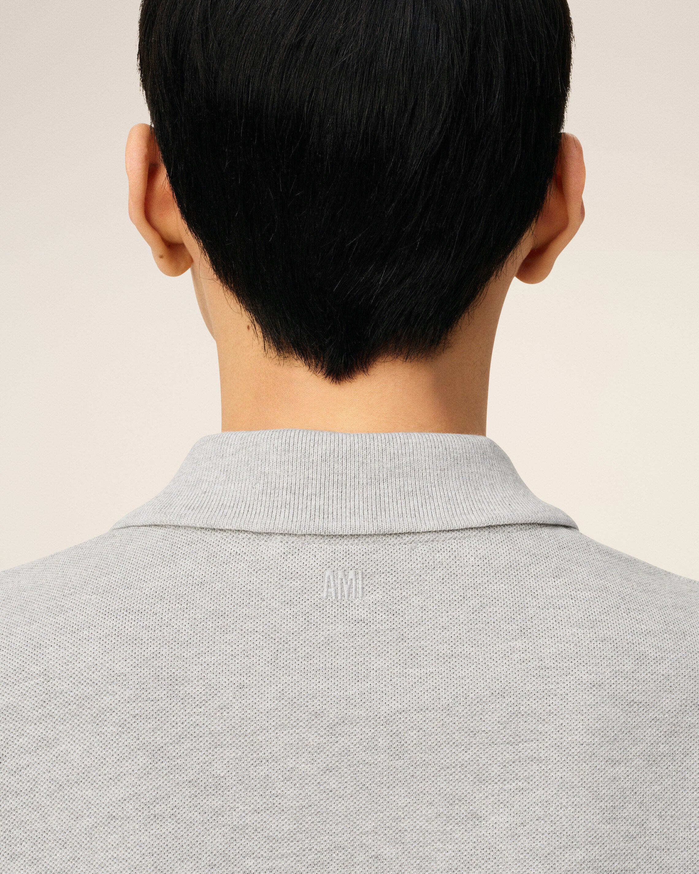 Tonal Ami embroidery under back neckline