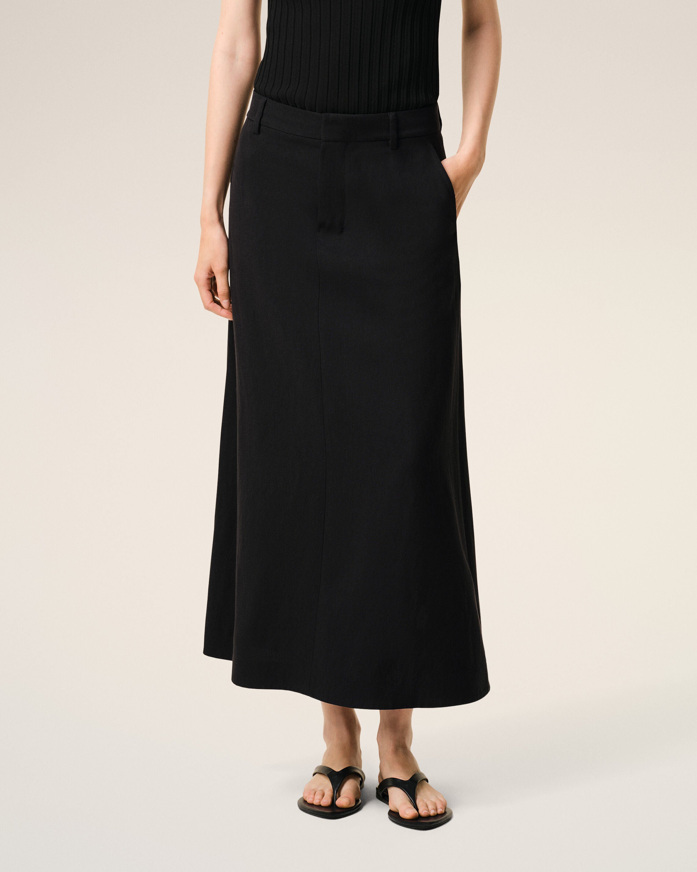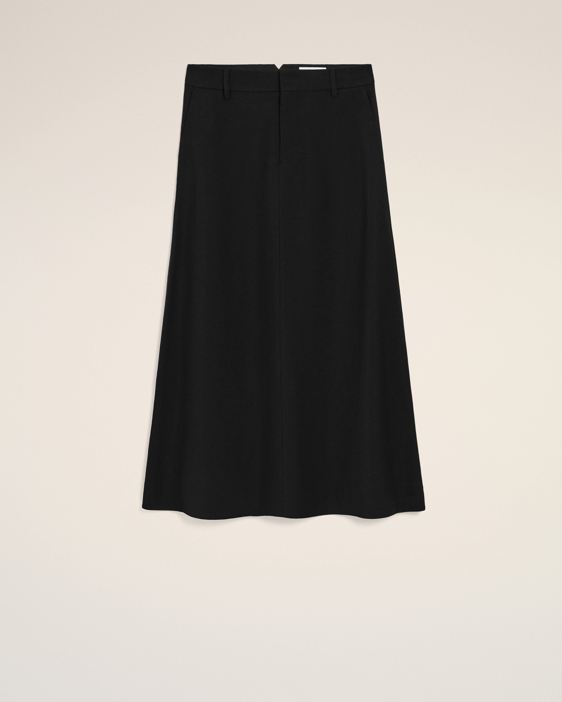 Black Blended Linen Tailor Construction Long Trapeze Skirt