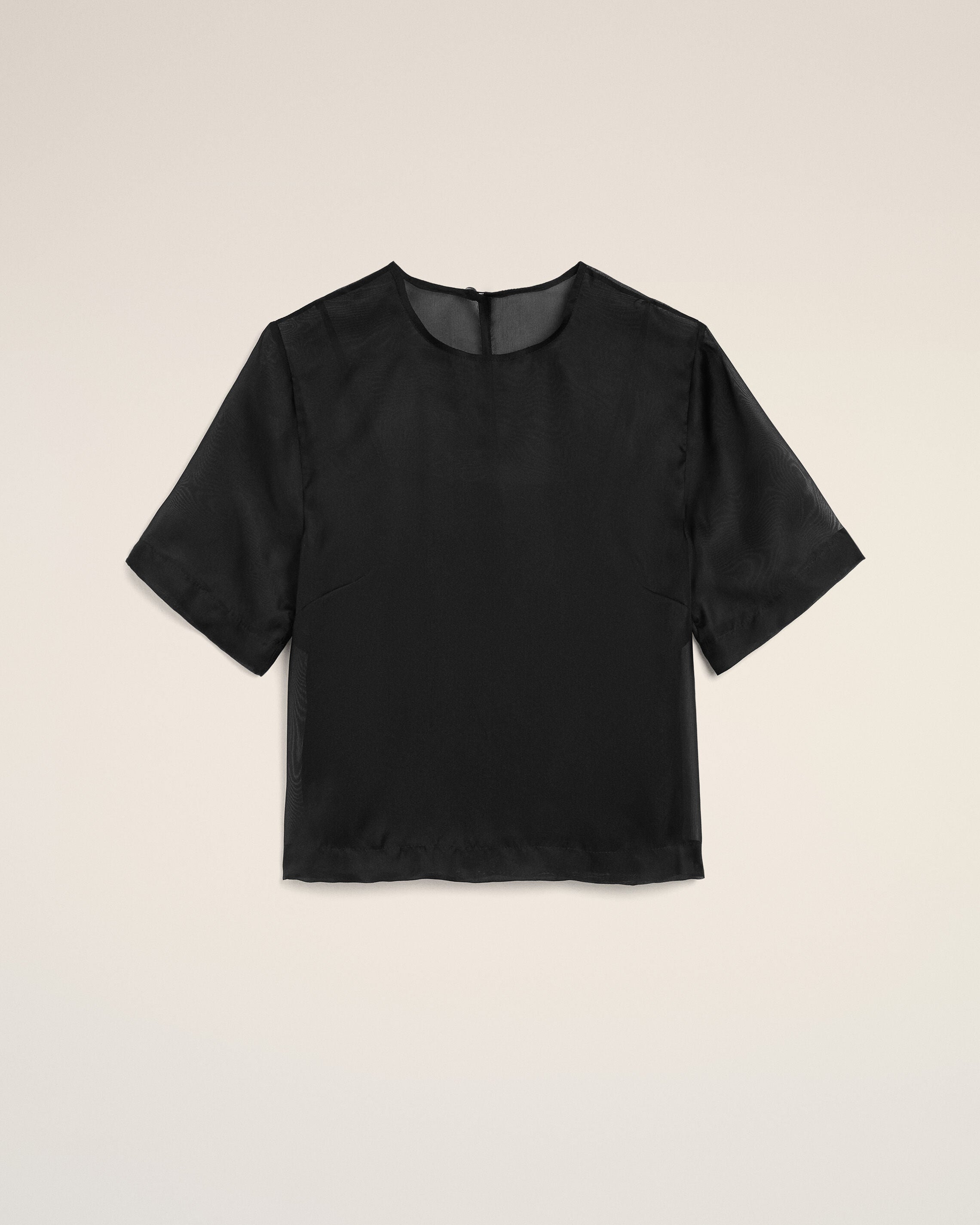 Black SIlk Short Sleeves Sheer With Undertop Top