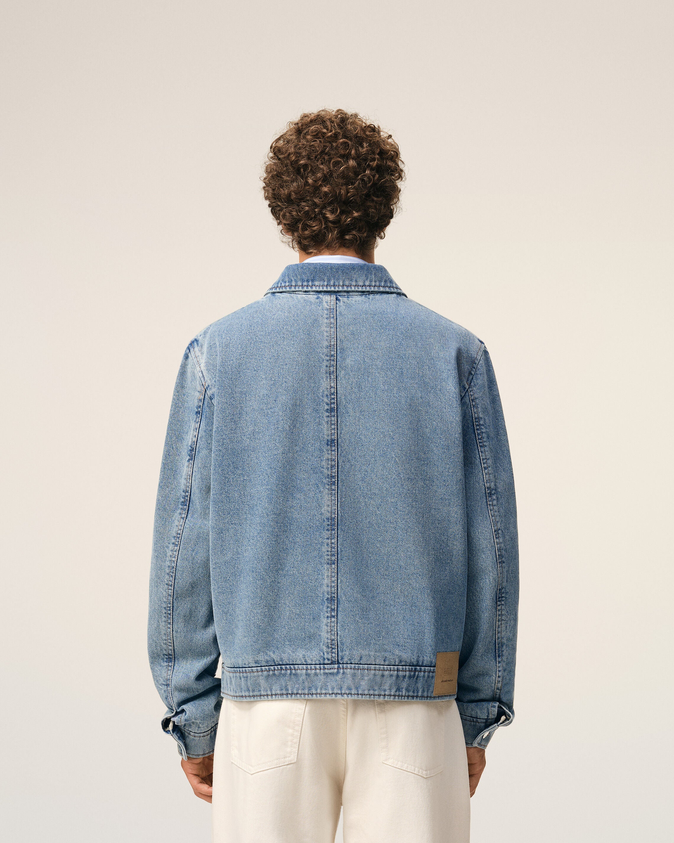 Blue Cotton Contrasted Ami De Coeur Zipped Jacket
