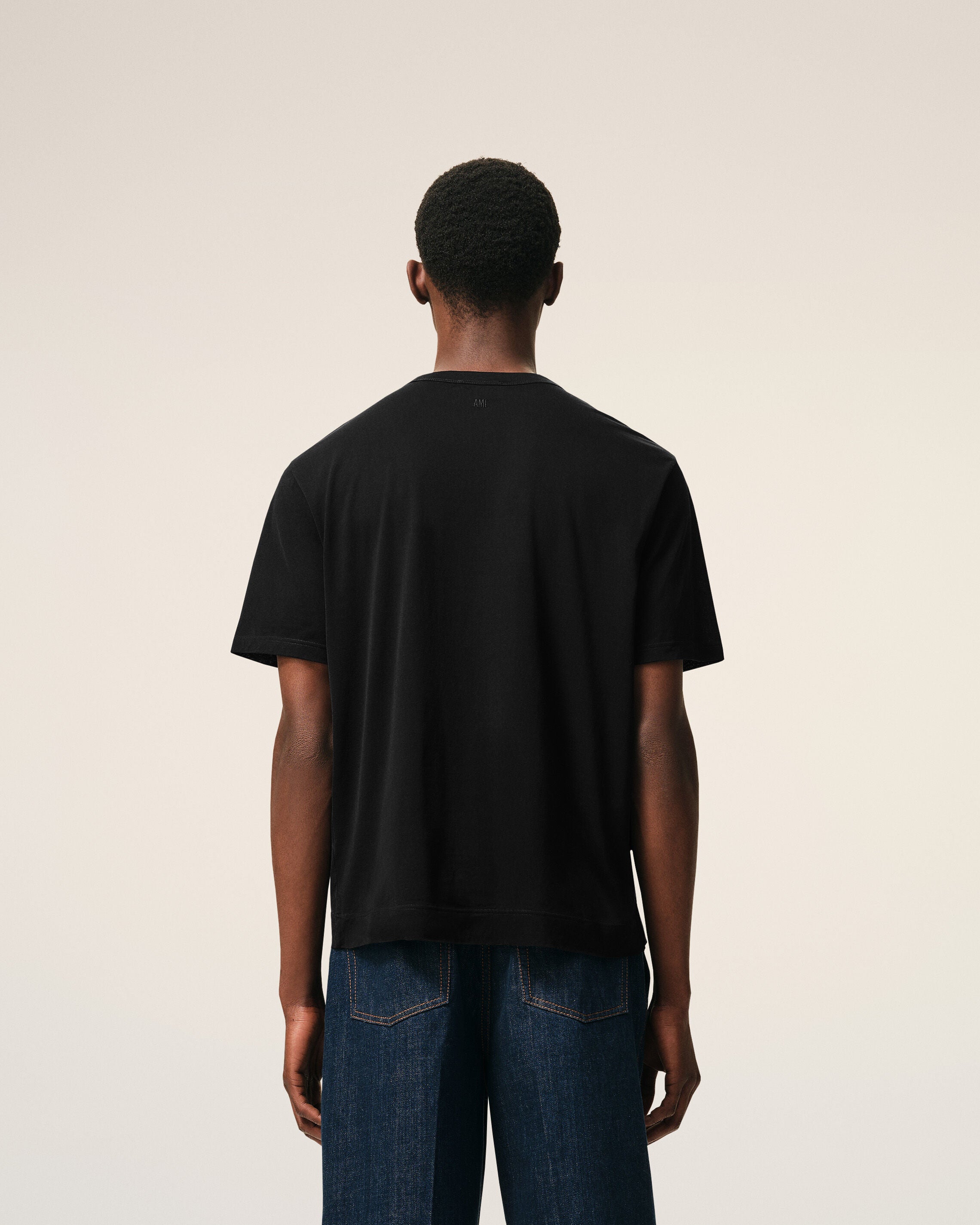 Tone on tone Ami embroidery under back neckline