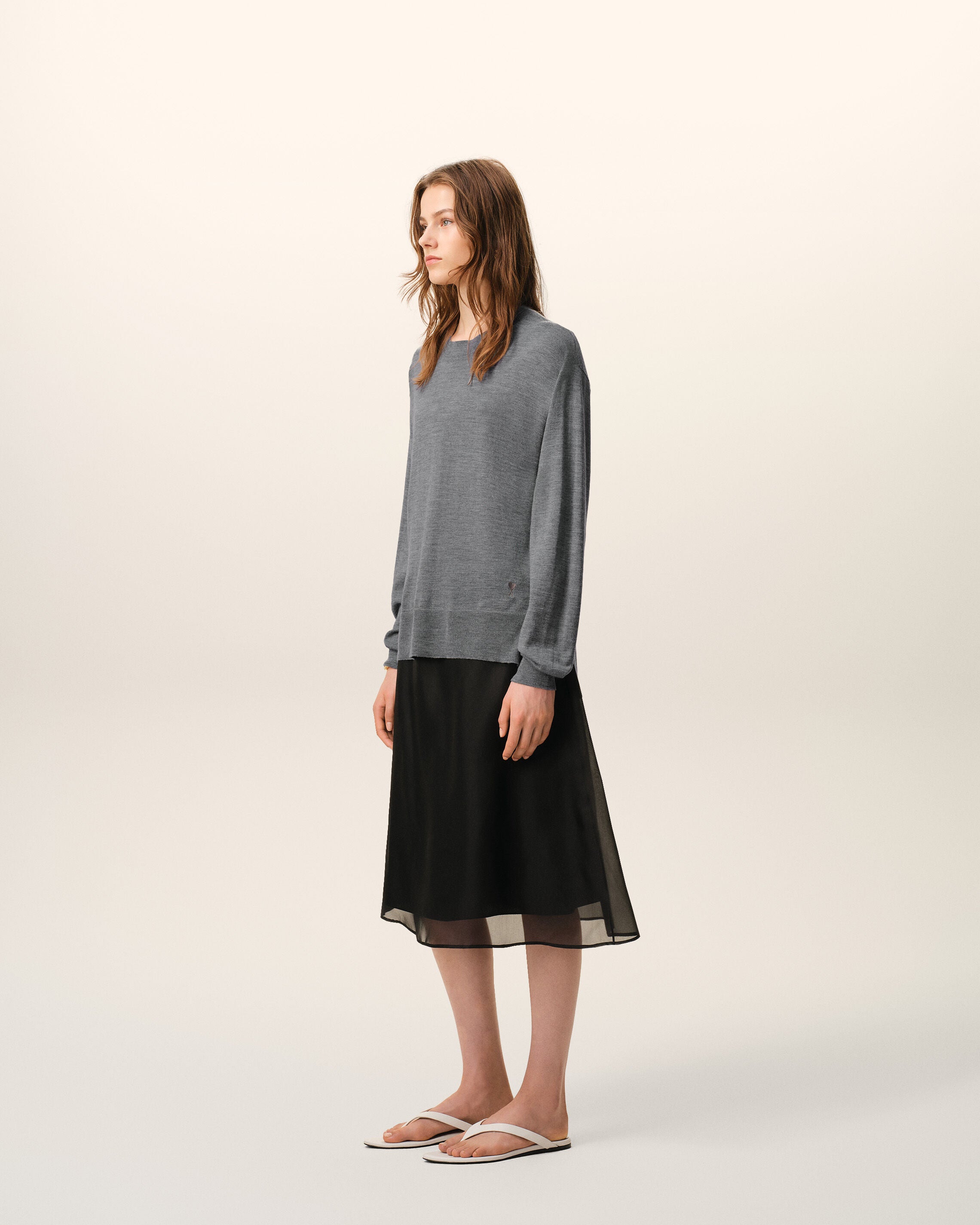 Grey Wool Crewneck Sweater With Contrasted Ami De Coeur