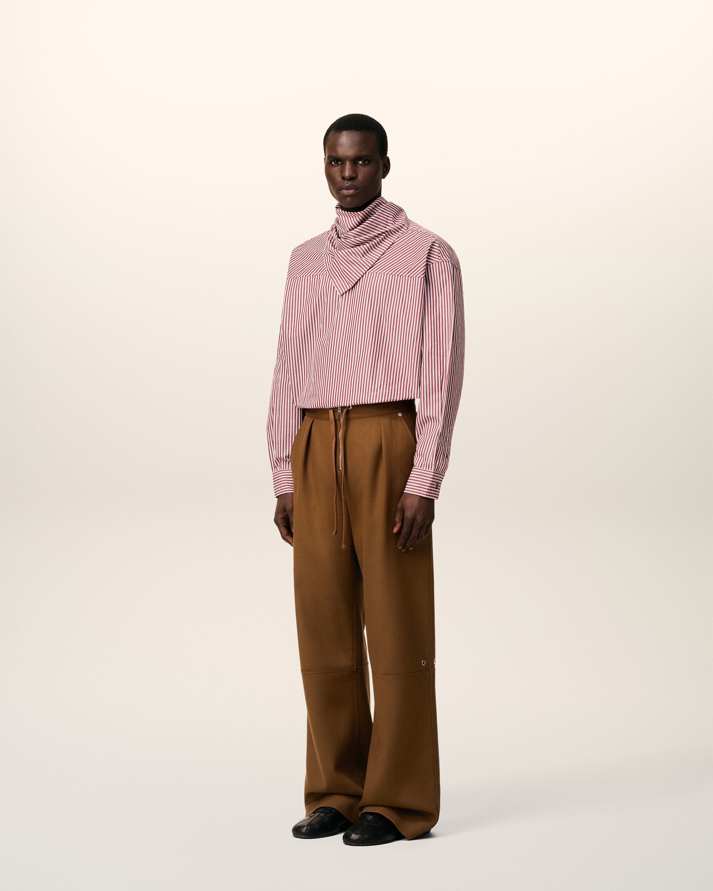 Burgundy Cotton Long Sleeves Striped Bandana Blouse