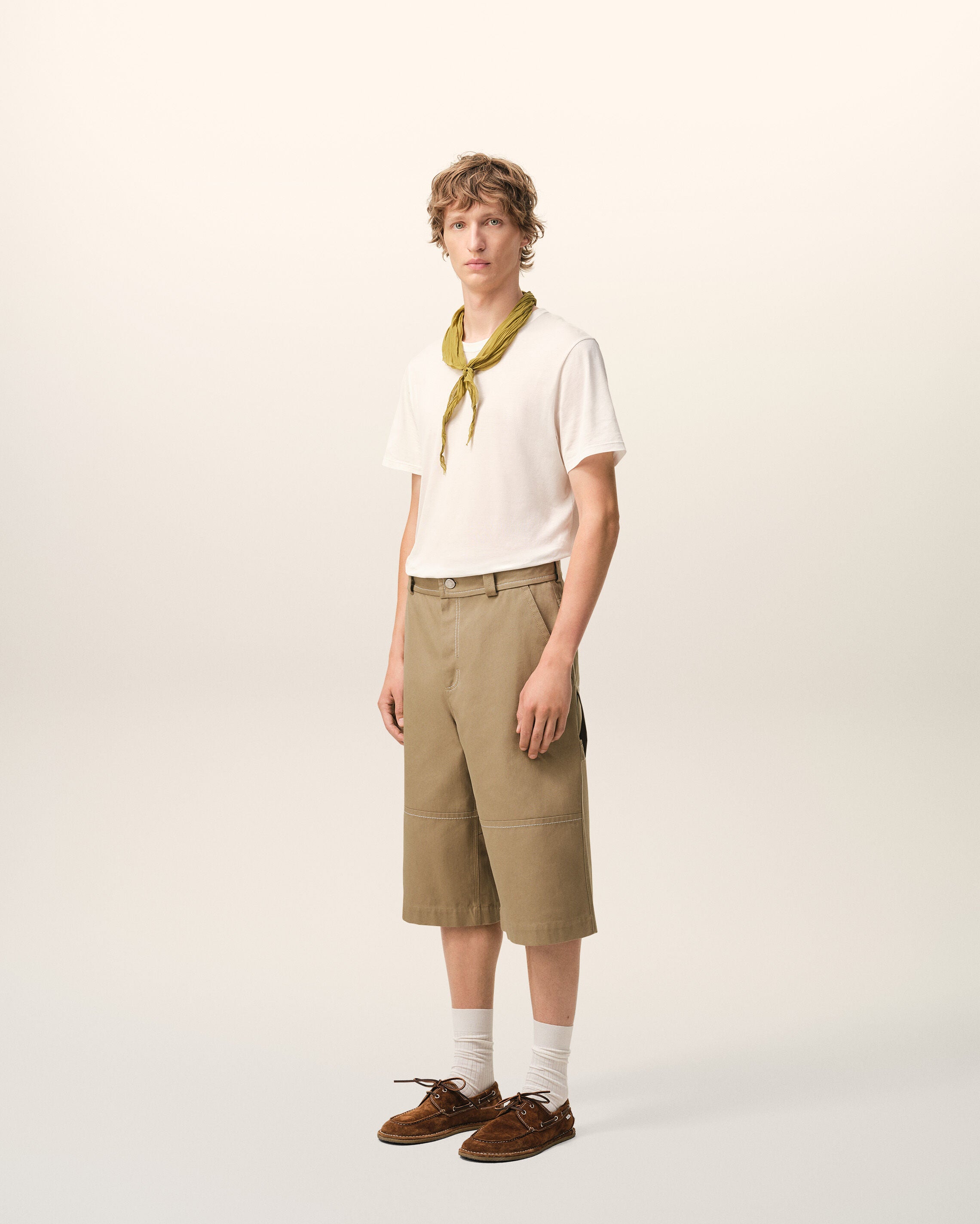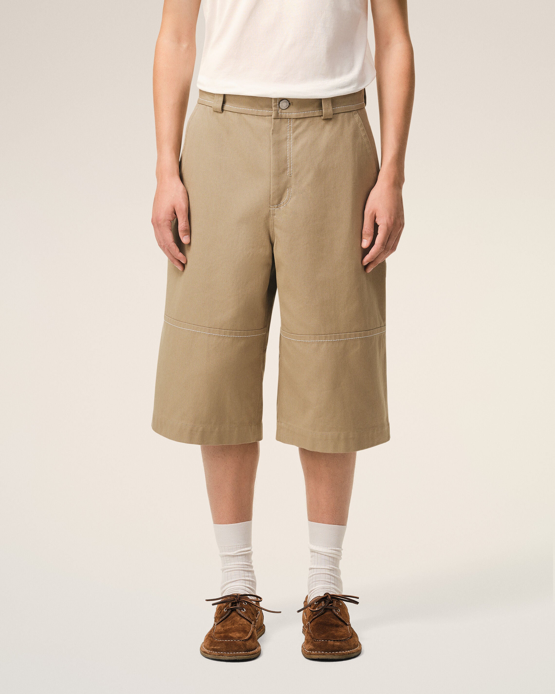 Beige Cotton Worker Bermuda Shorts