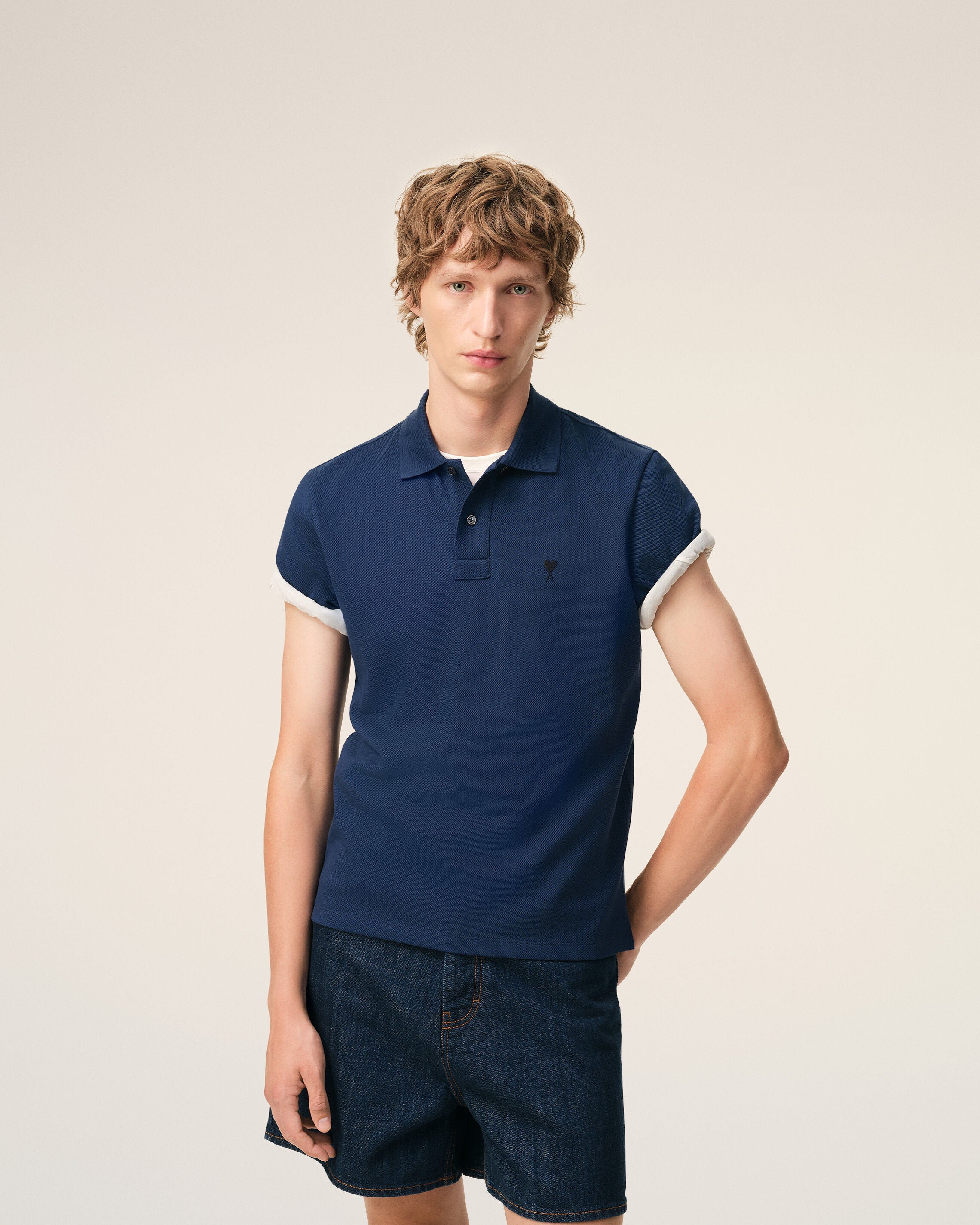 Blue Cotton Short Sleeves Ami De Coeur Polo Shirt