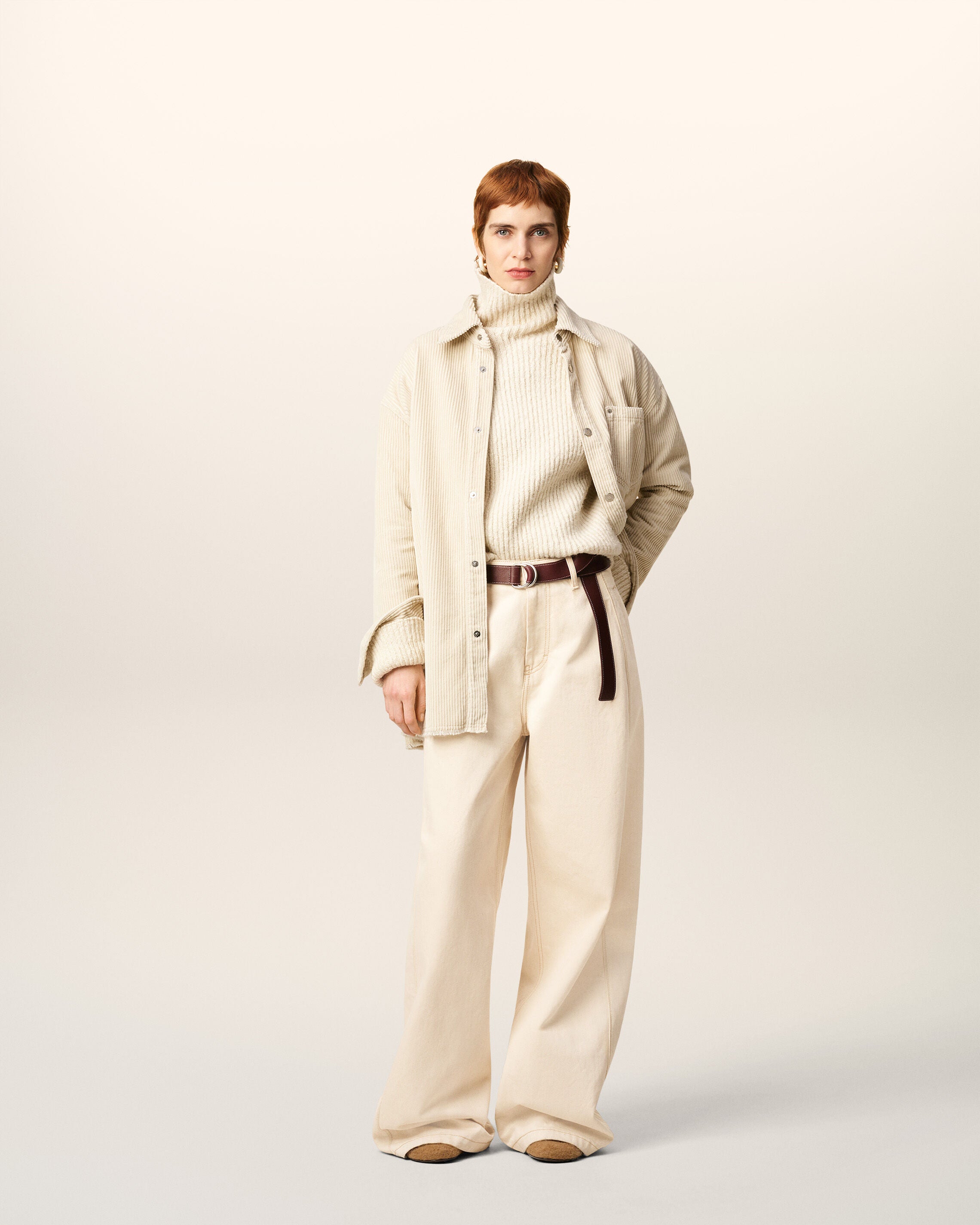 White Cotton Corduroy Side Slit Overshirt