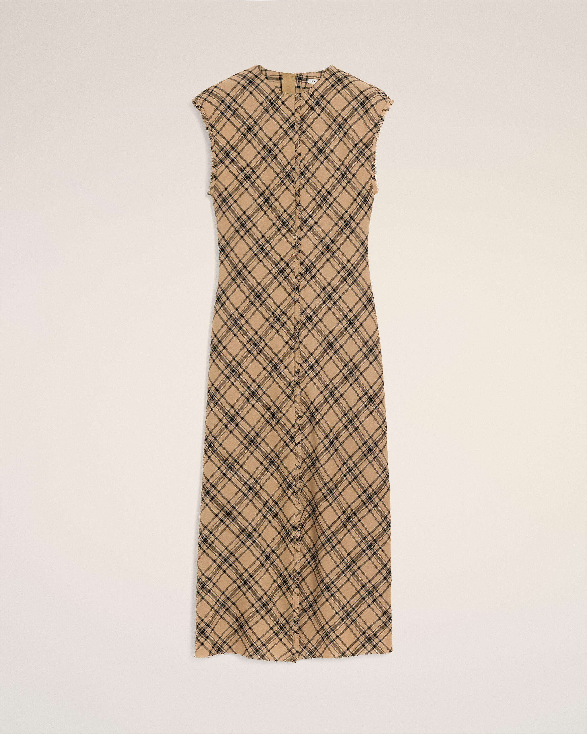 Raw edge finishing at the bottom, edge of back slit, armholes and center front