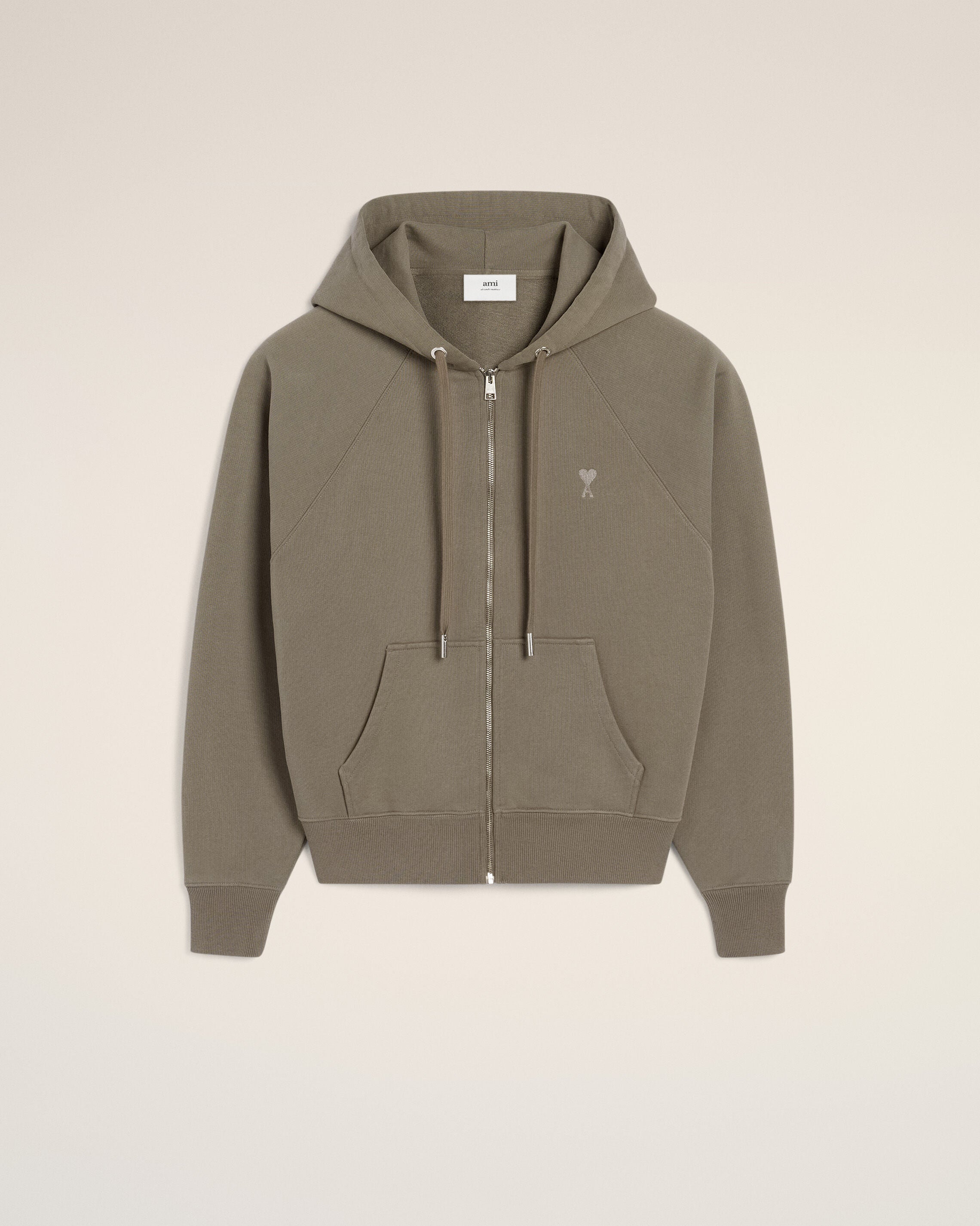 Ami de Coeur zipped hoodie in heavy loopback organic cotton fleece.