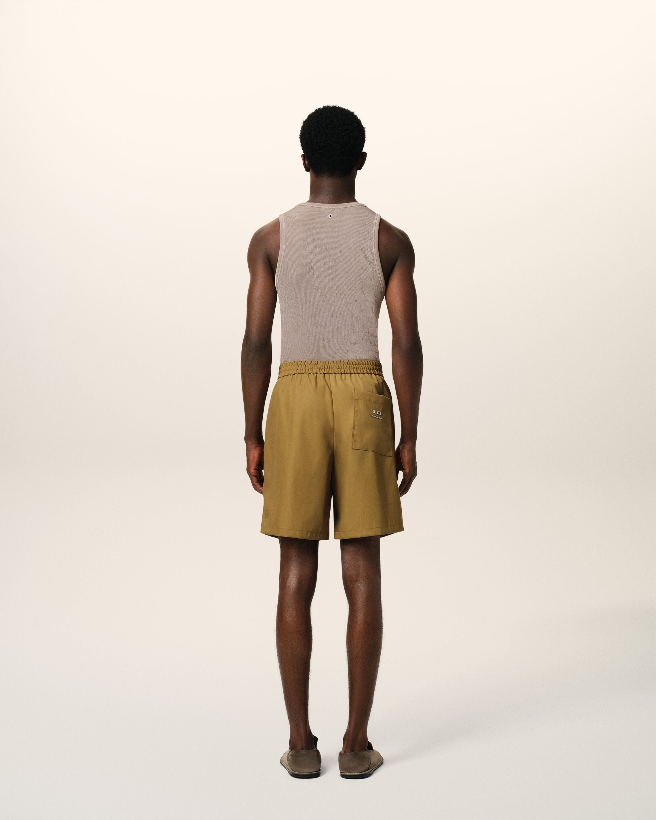 Elasticated waist shorts in technical twill in nylon and cotton.