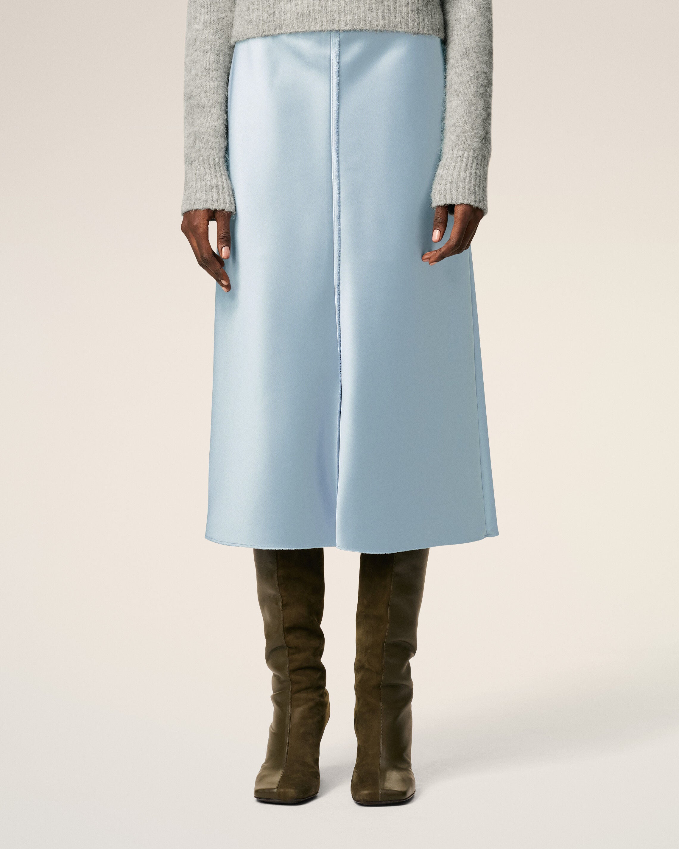 Grey Wool Midi Corolla Skirt