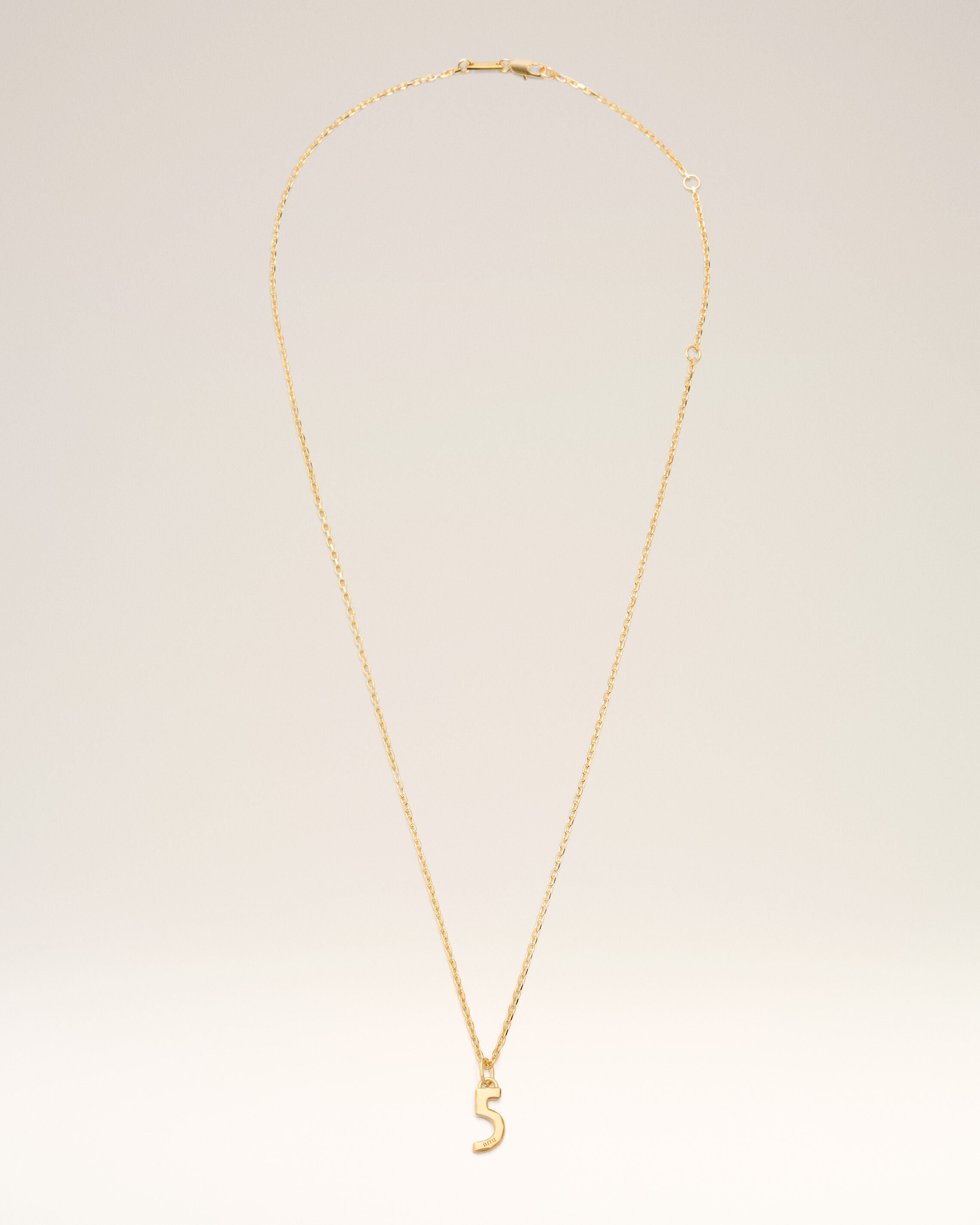 Gold Brass Hammered "5" Pendant Necklace