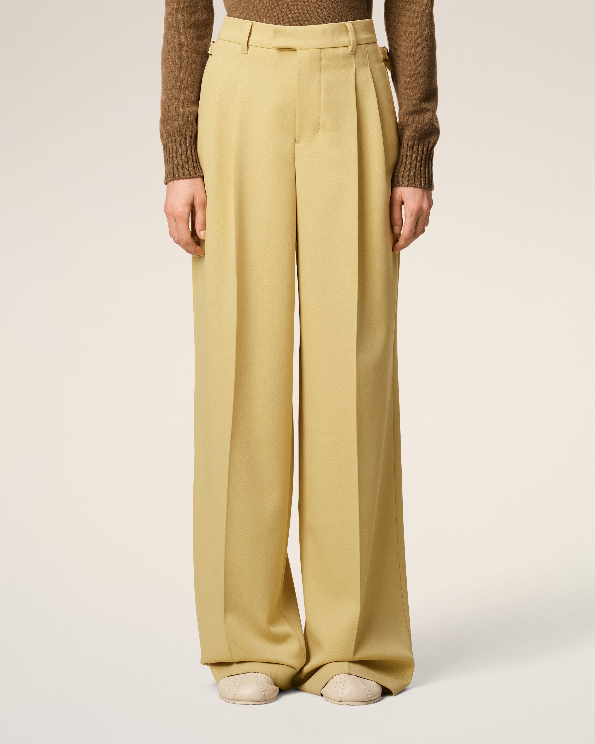 Green Wool Tabs Wide Trousers