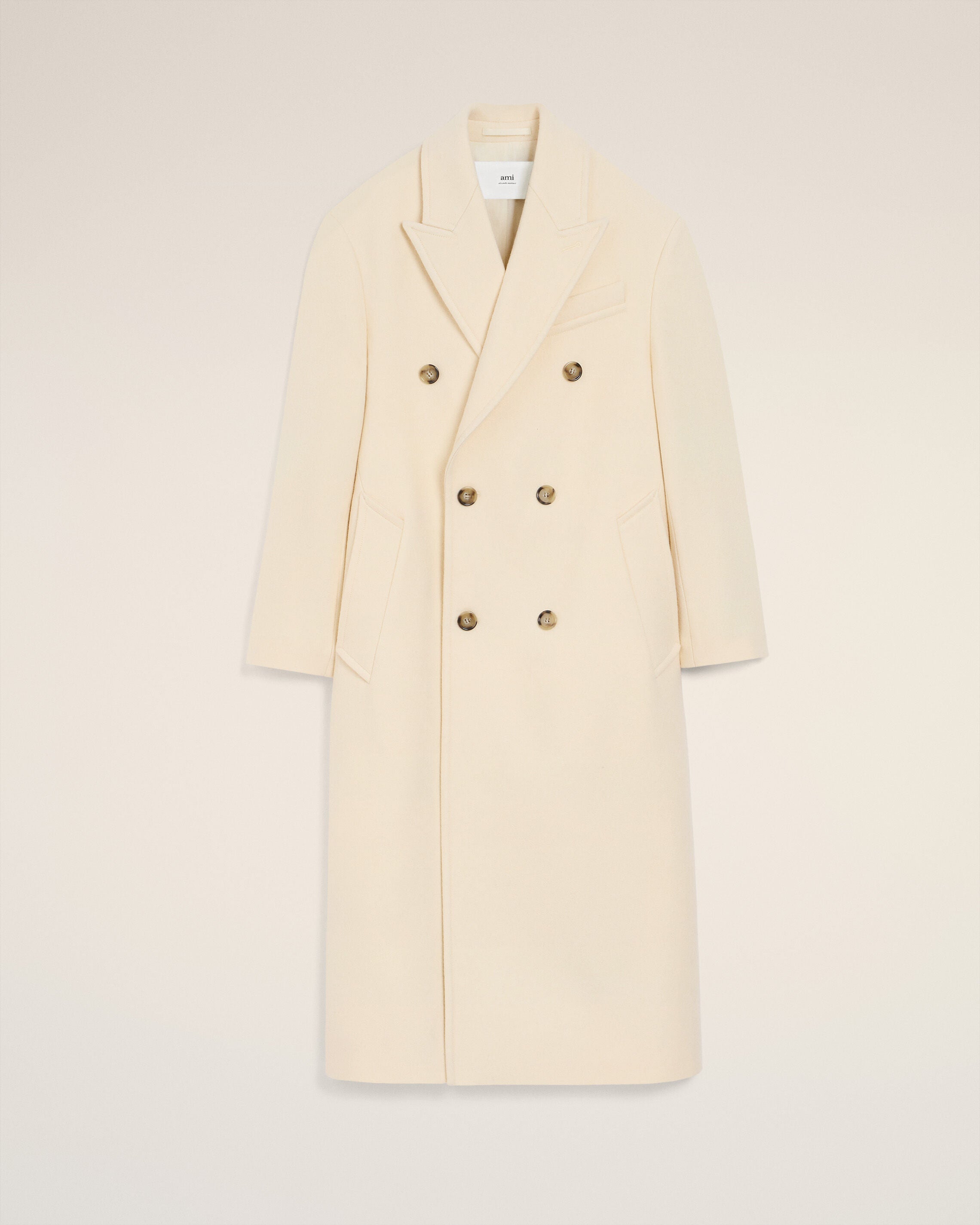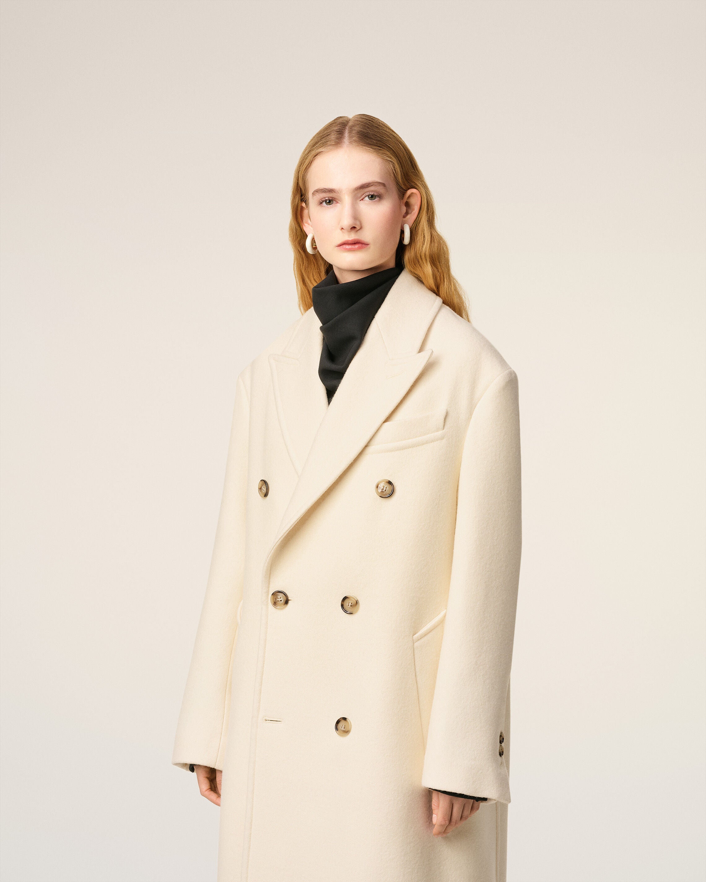 White Wool Double Breasted Long Coat