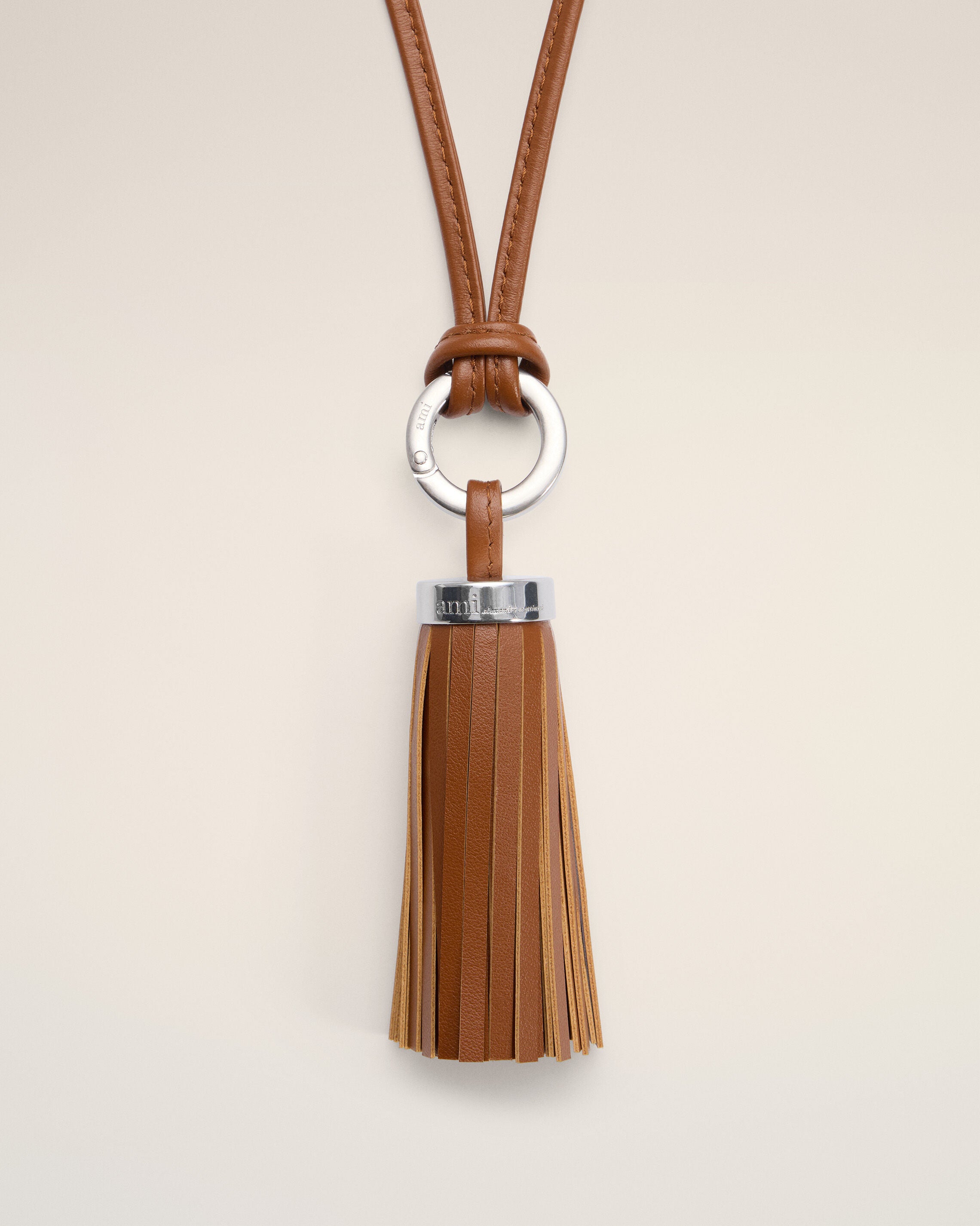 Brown Leather Ami Pompom Keyring