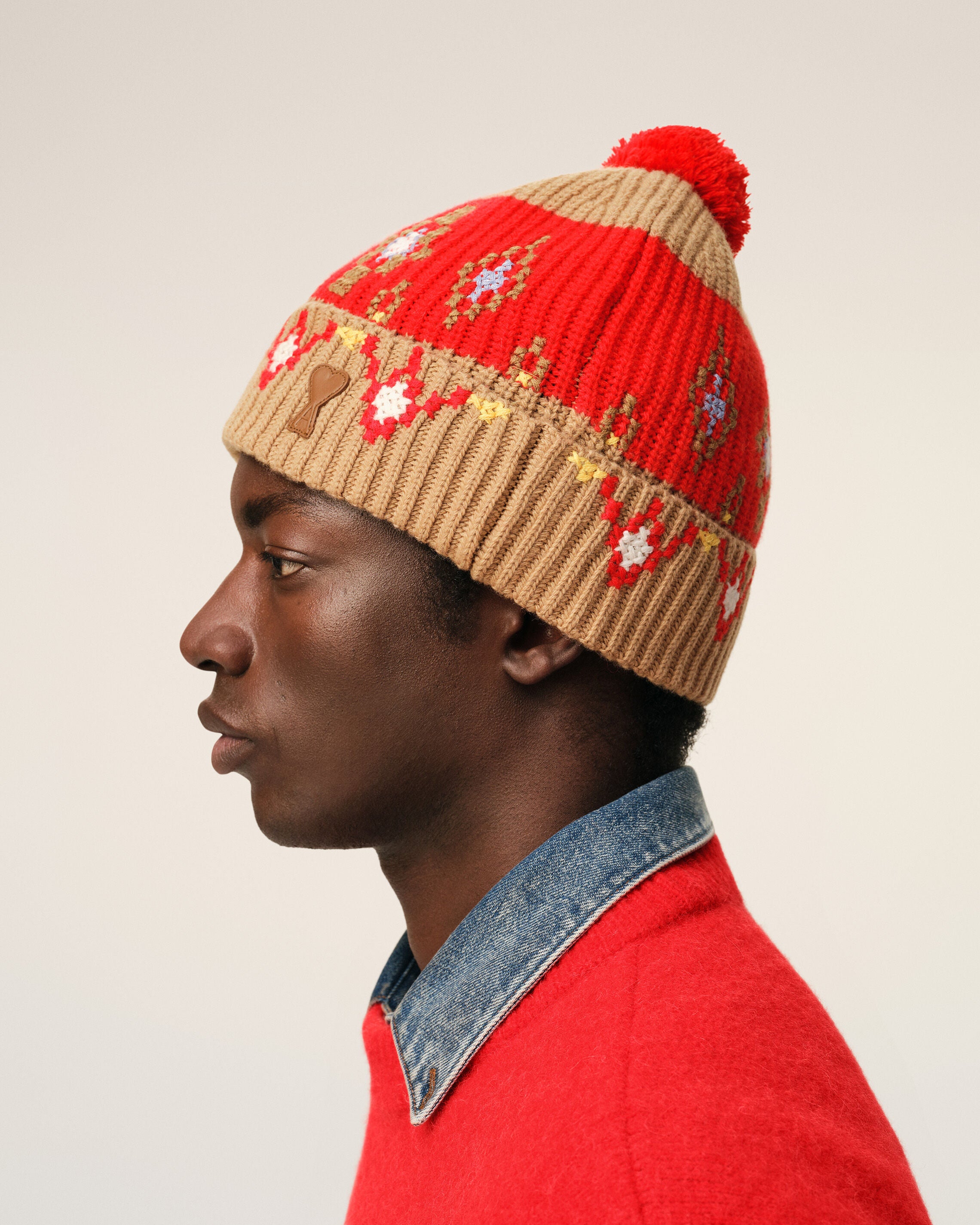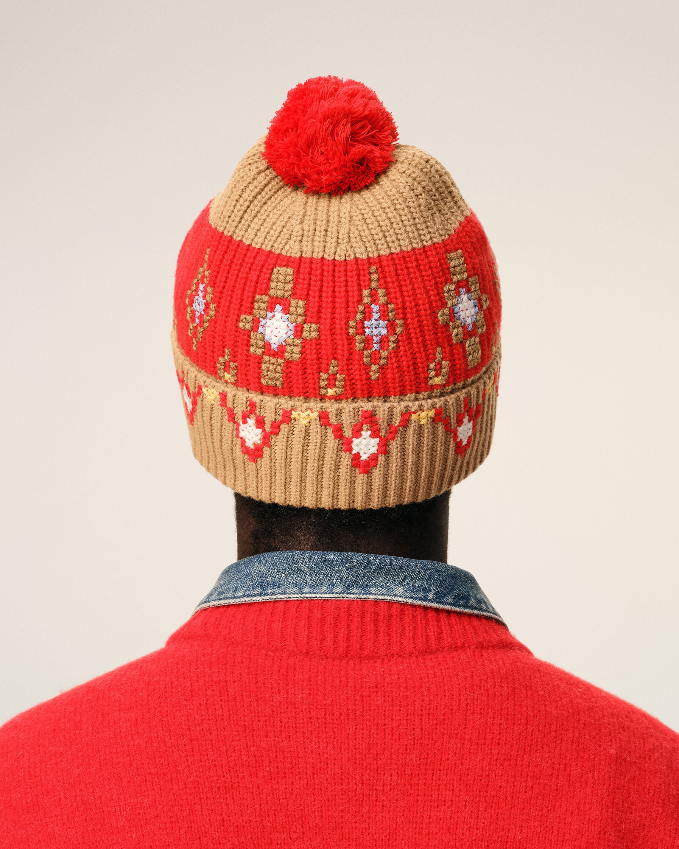 Brown Wool Cross Stitch Beannie