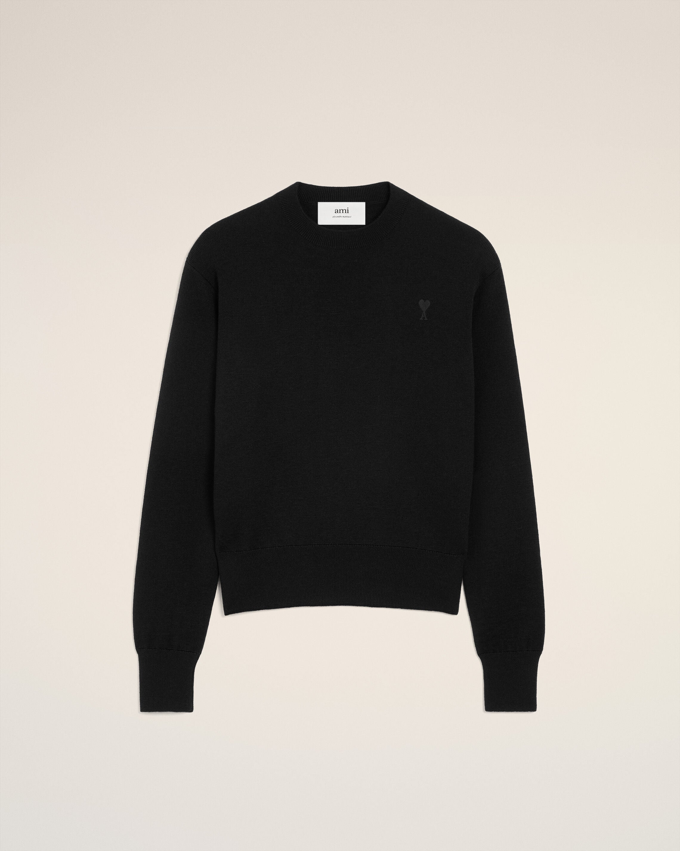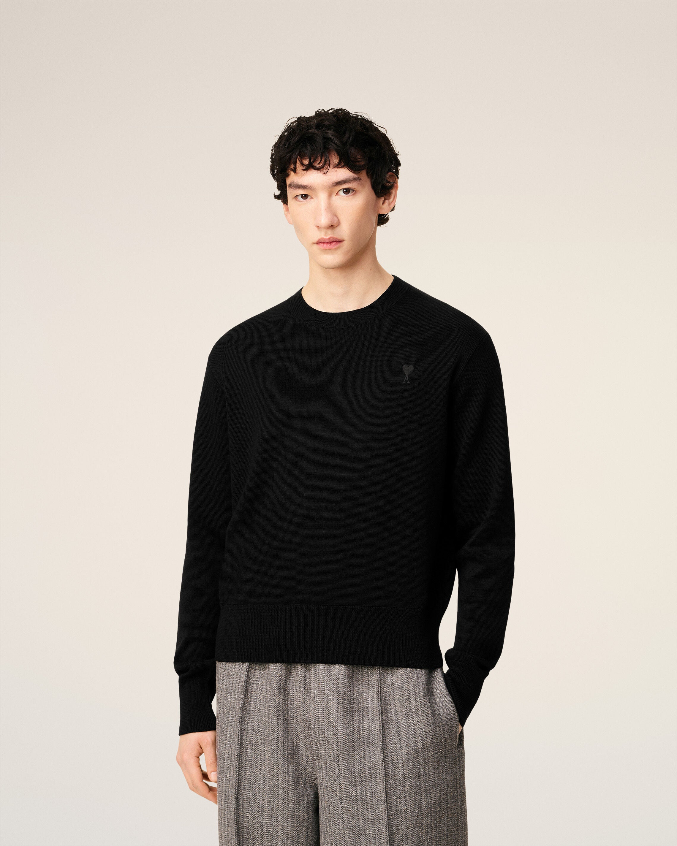 Black Wool Crewneck Sweater With Contrasted Ami De Coeur