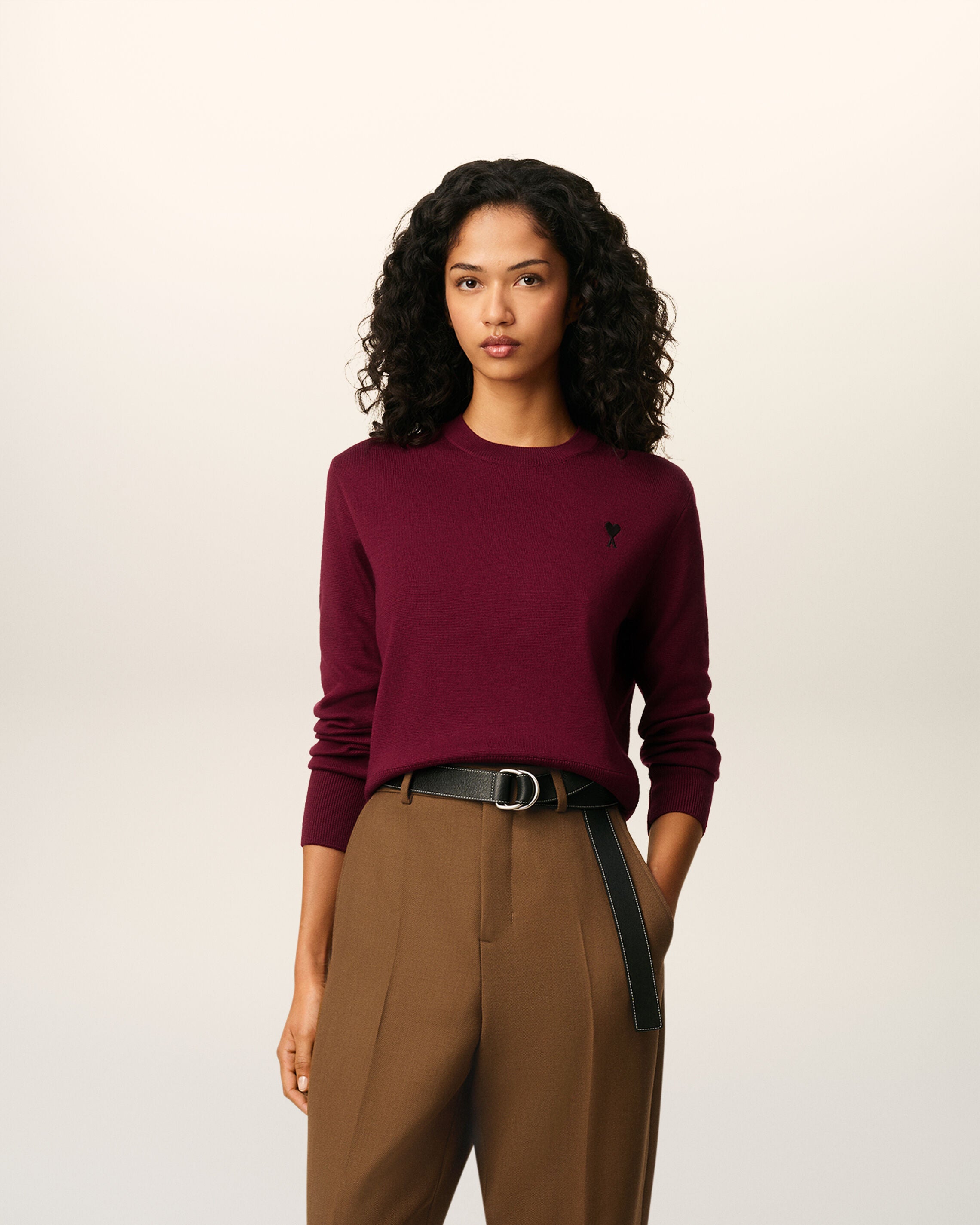 Burgundy Wool Ami De Coeur Crewneck Sweater