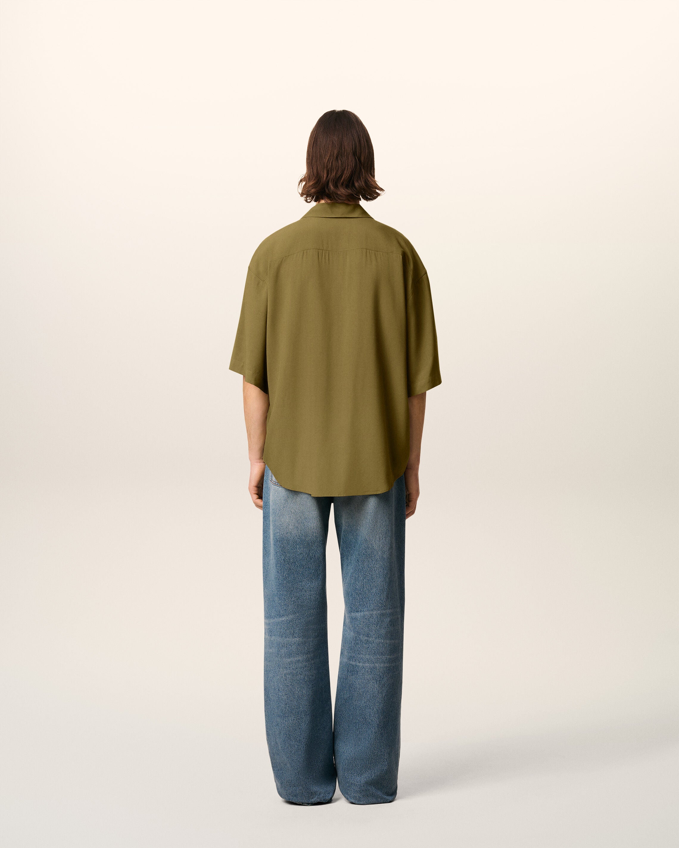 Green Flower Printed Short Sleeved Ami Camp Shirt