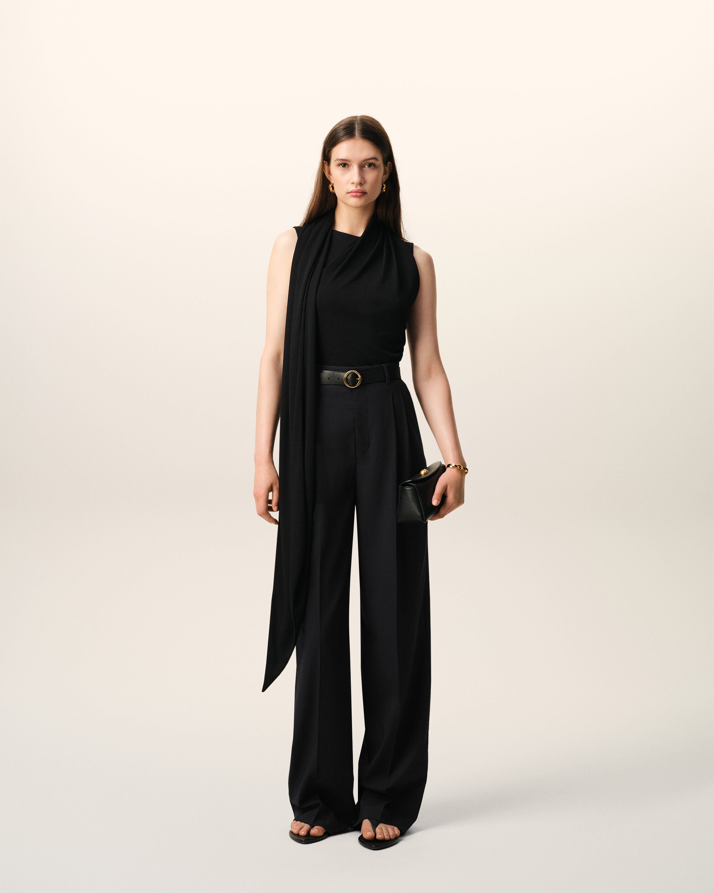 Pantalón negro de lana virgen con cinturón tipo pareo
