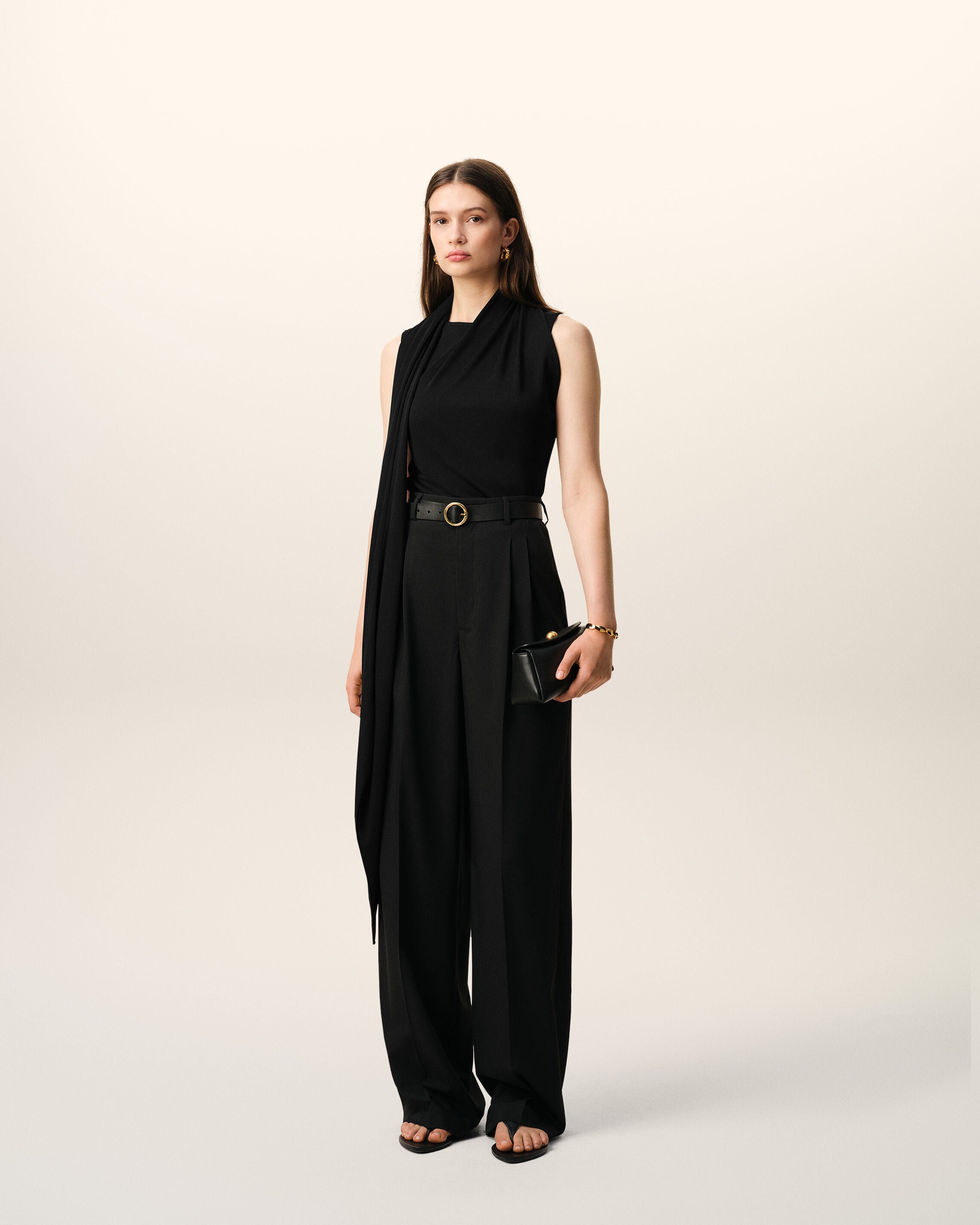 Top lavallière sin mangas de jersey crêpe.