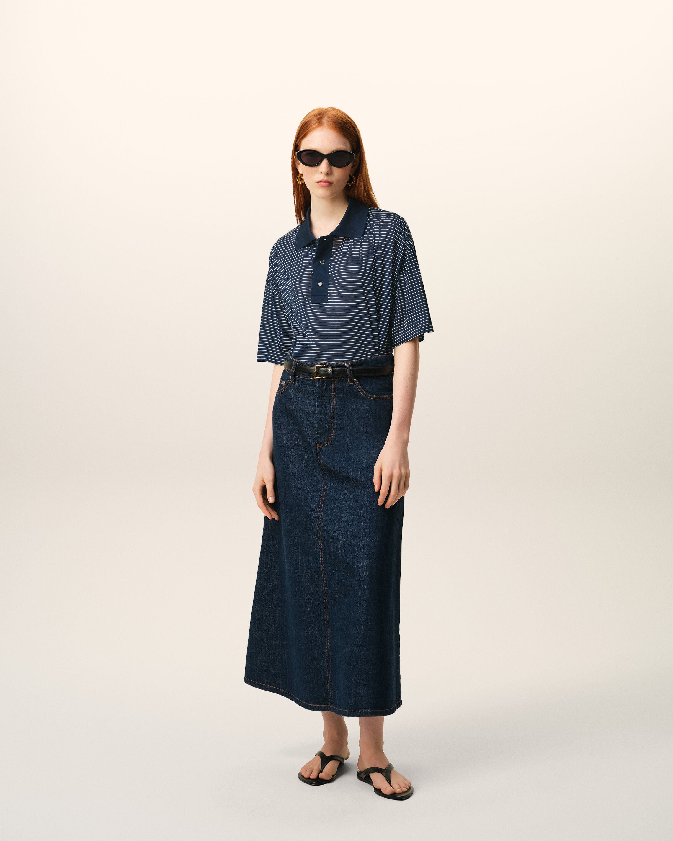 La modelo mide 1,79 m / 5'8" y lleva una talla XS.